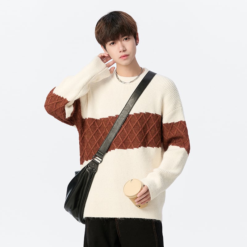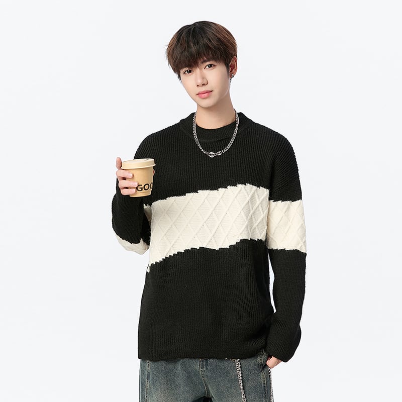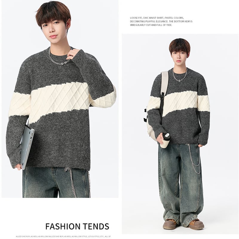 【WSシリーズ】★セーター★ 3color ニットトップス 男女兼用 メンズ 配色 大きいサイズ おしゃれ