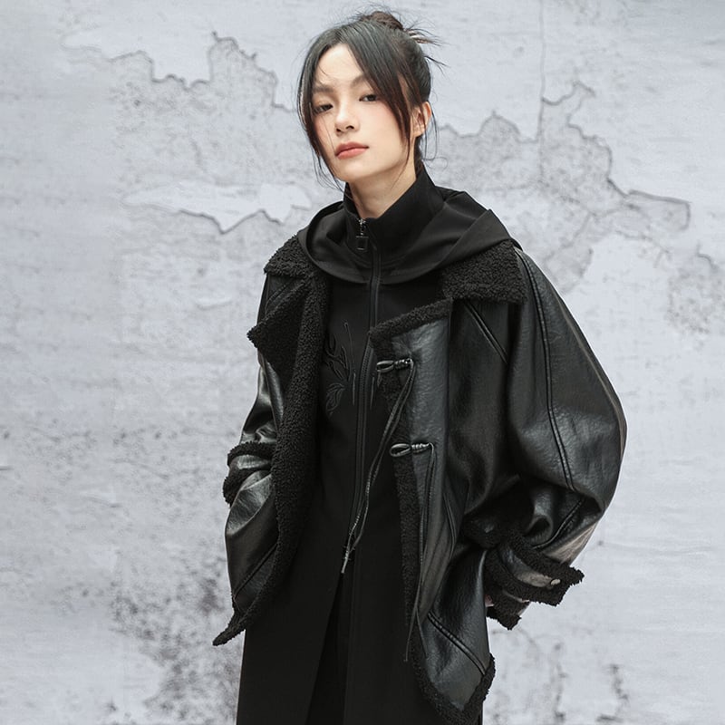 【大青龍肆シリーズ】★チャイナ風アウター★ ジャケット 裏起毛 暖かい かっこいい 合わせやすい ブラック 黒い