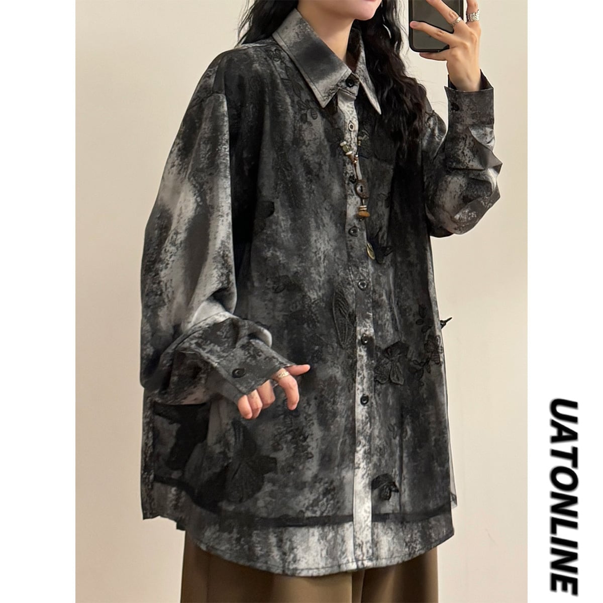 【UATONLINEシリーズ】★シャツ★ トップス 男女兼用 メンズ カジュアル 長袖シャツ チェック柄 配色 彩り