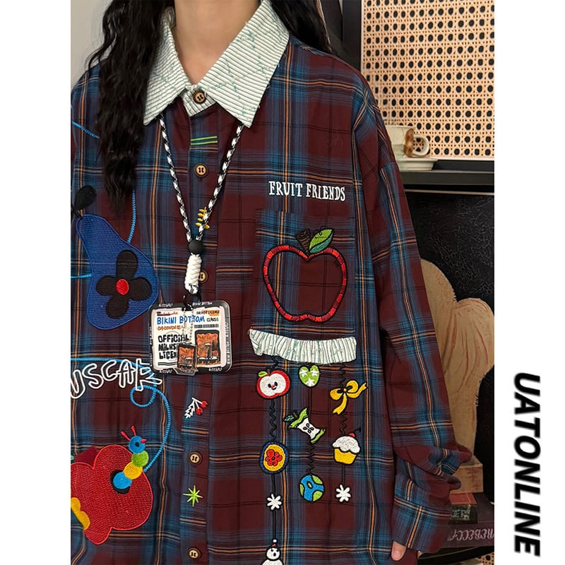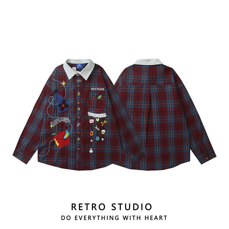 【UATONLINEシリーズ】★シャツ★ 刺繍 トップス 男女兼用 メンズ カジュアル 長袖シャツ チェック柄