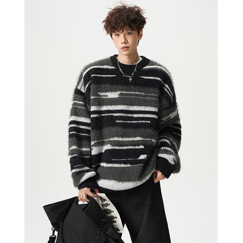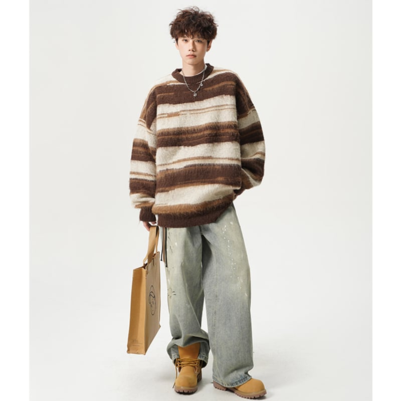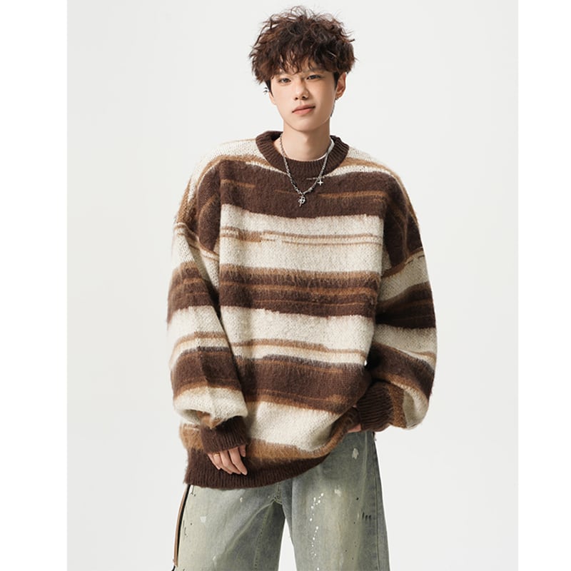 【Qotriockシリーズ】★セーター★ 2color ニットトップス 男女兼用 メンズ 横縞 縞模様 ブラック ブラウン