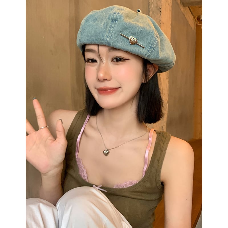 【WXFシリーズ】★帽子★ 3color ぼうし デニム レディース ベレー帽 画家帽子 ブルー 青い デザイン性有り