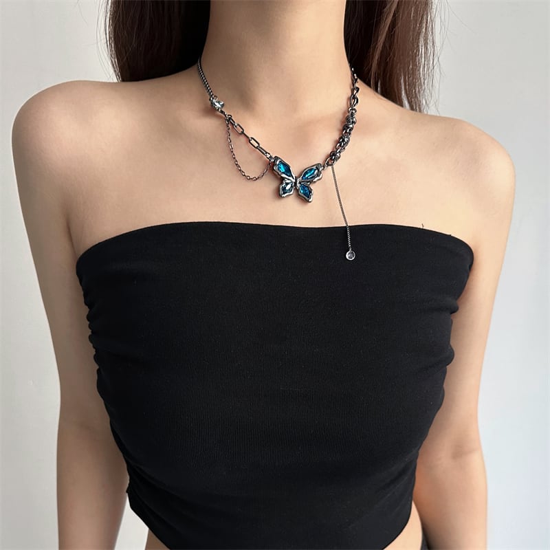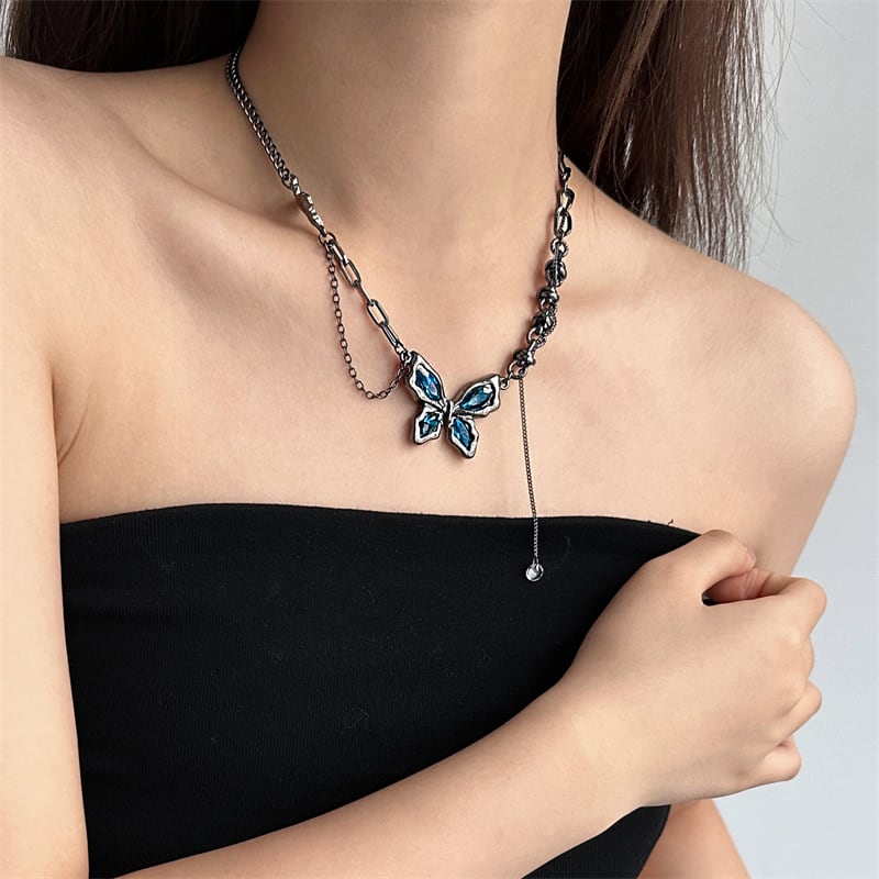 【SUMMERBLACKシリーズ】★チャイナ風ネックレス★ 首輪 アクセサリー 小物 個性的 レトロ レディース 切り替え 蝶々
