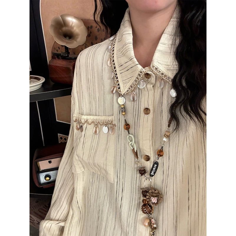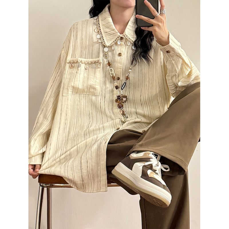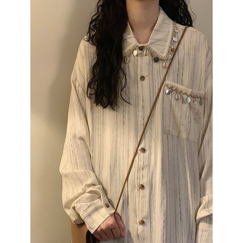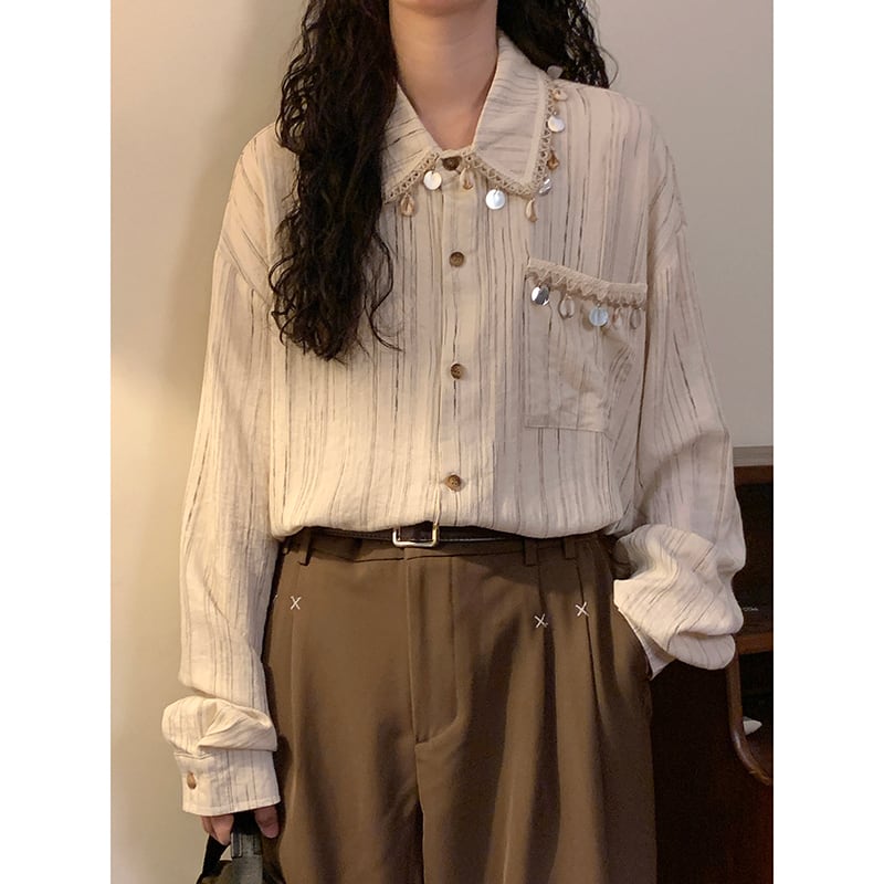 【UATONLINEシリーズ】★シャツ★ トップス 男女兼用 メンズ 縦縞 縞模様 スパンコール 合わせやすい