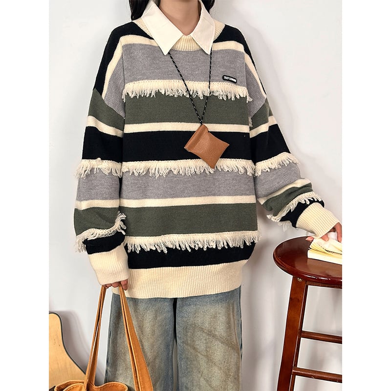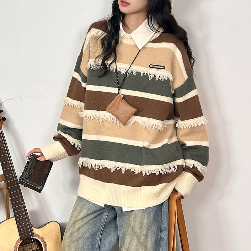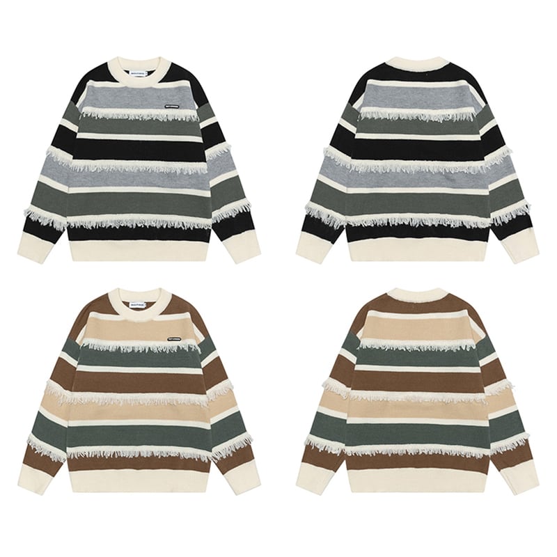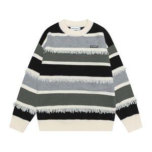 【UATONLINEシリーズ】★セーター★ 2color ニットトップス 男女兼用 メンズ 横縞 縞模様 カジュアル ラウンドネック