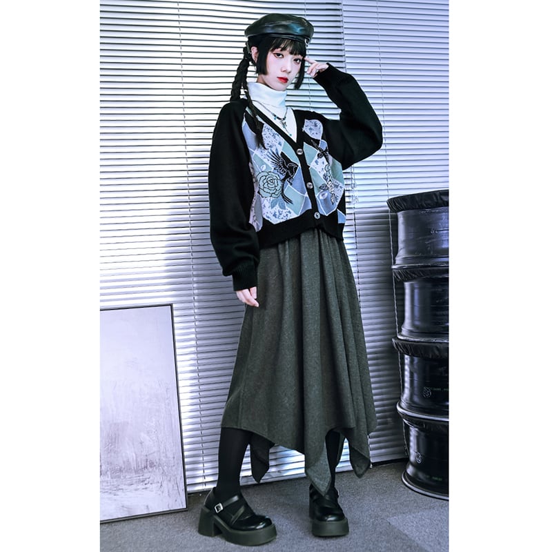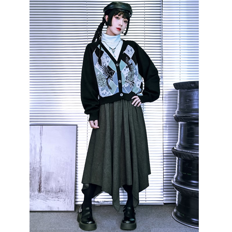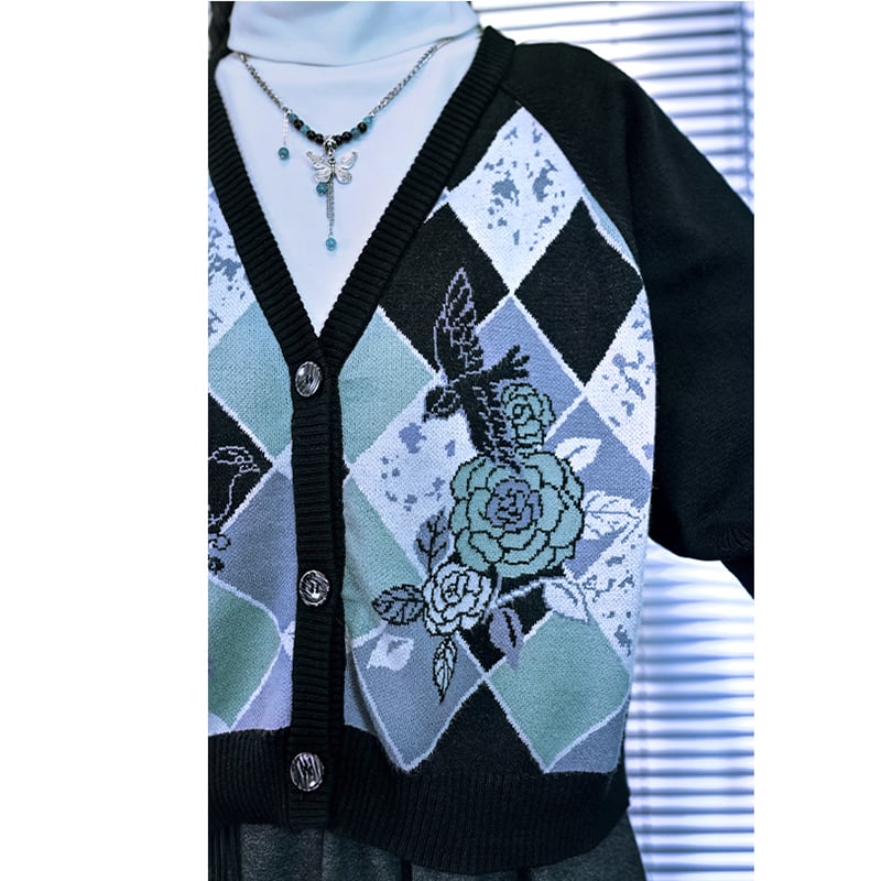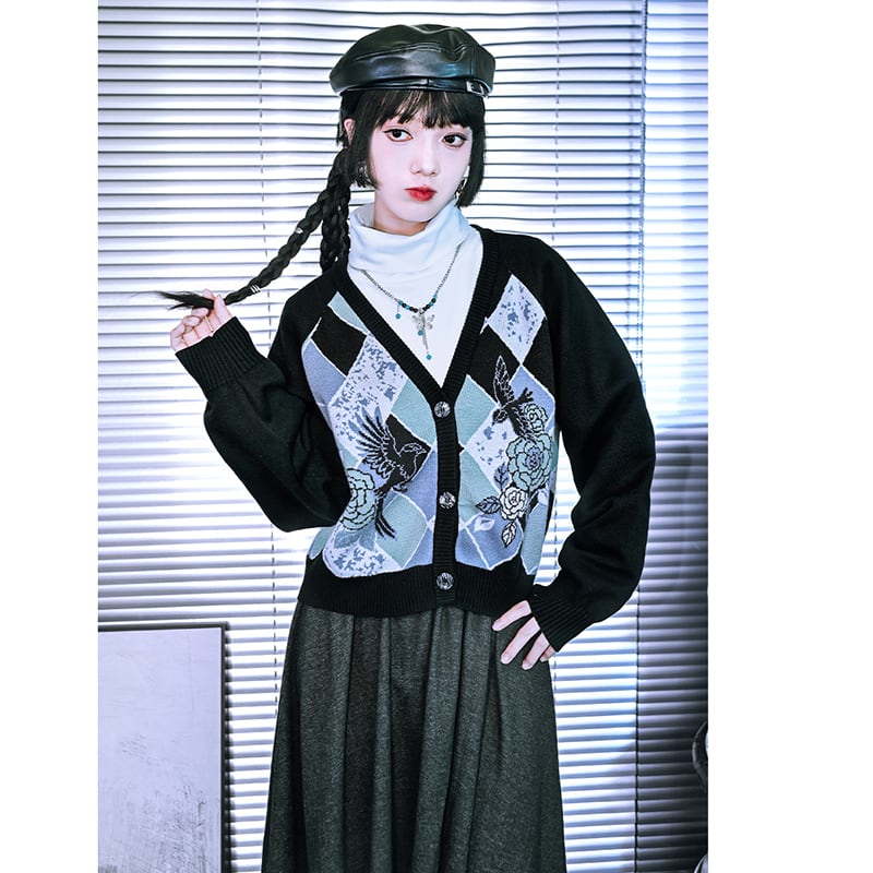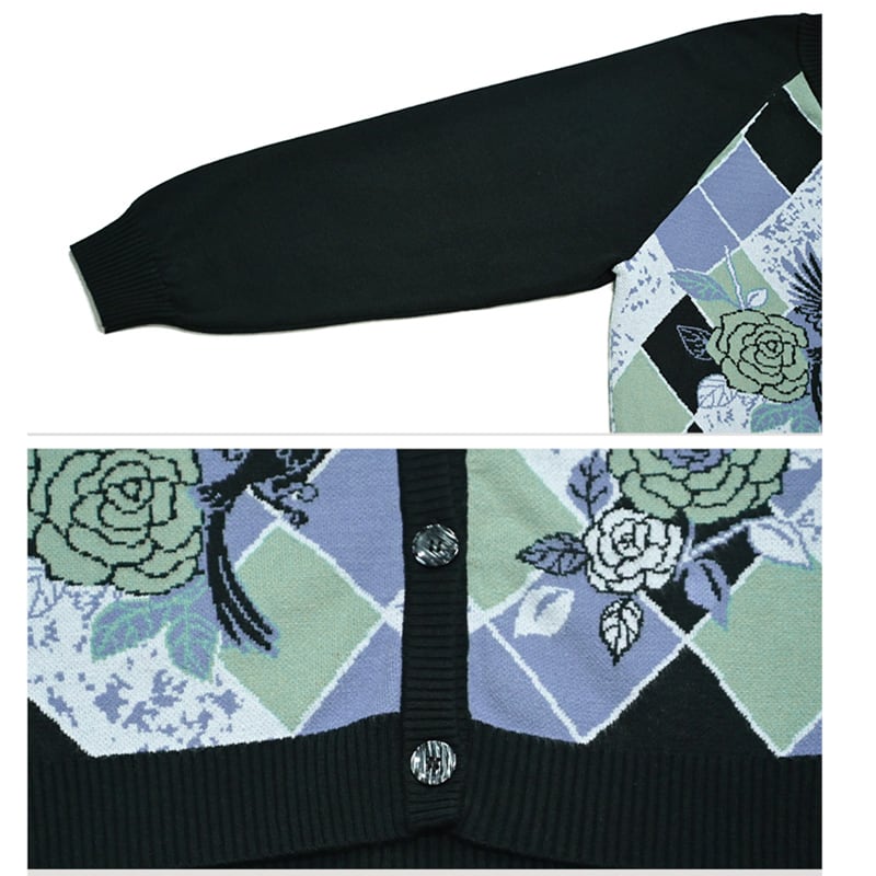 【古怪舍---鸞鳴赴夢シリーズ】★チャイナ風トップス★ セーター カーディガン Vネック 花柄 配色