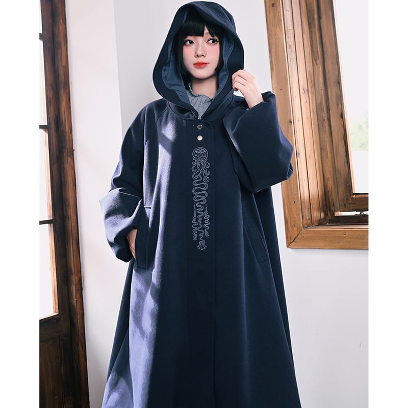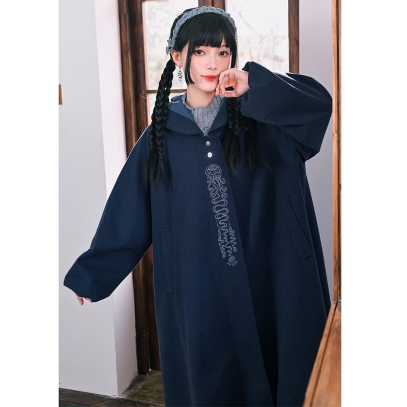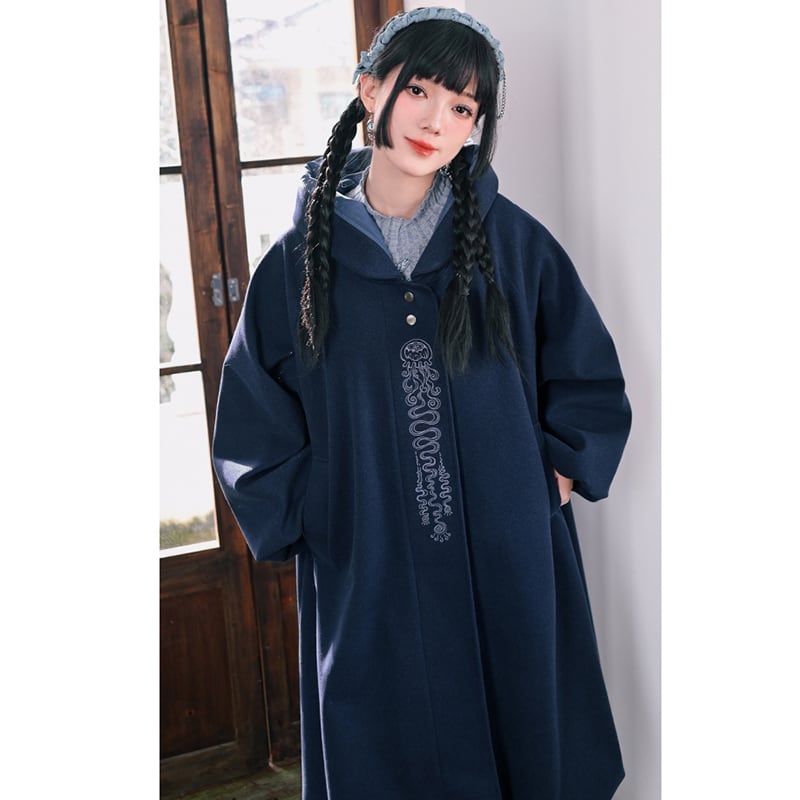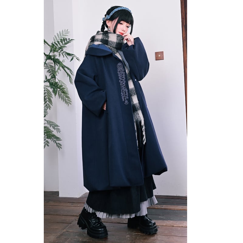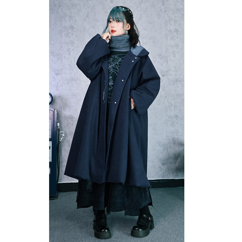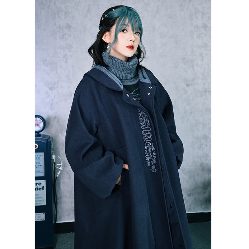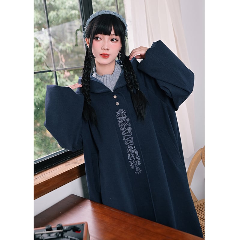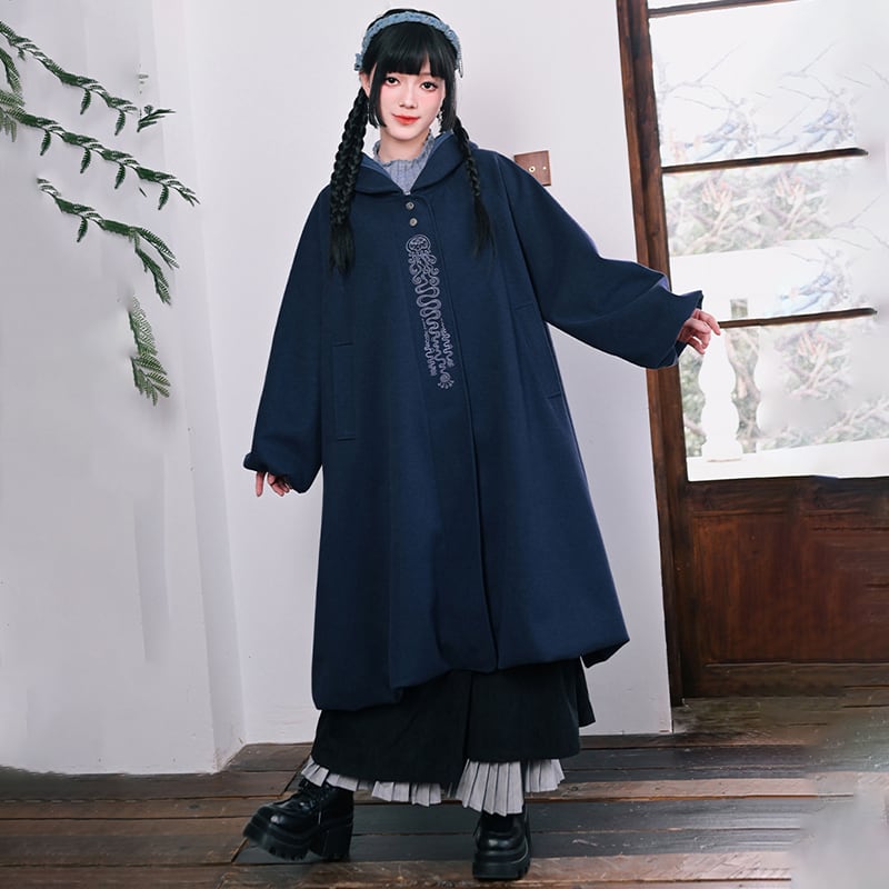 【古怪舍---藍眼淚シリーズ】★チャイナ風コート★ ラシャコート ロングコート レディース 暖かい ブルー 青い