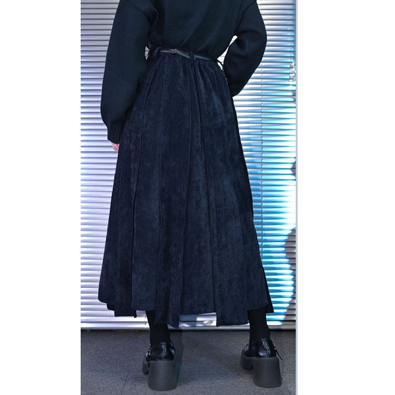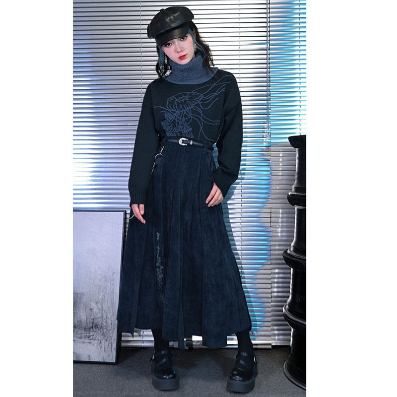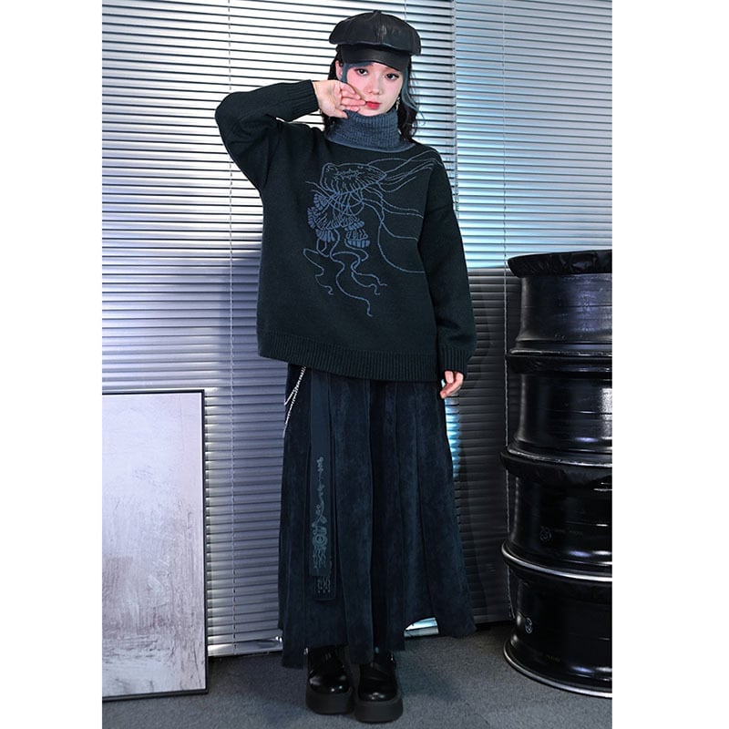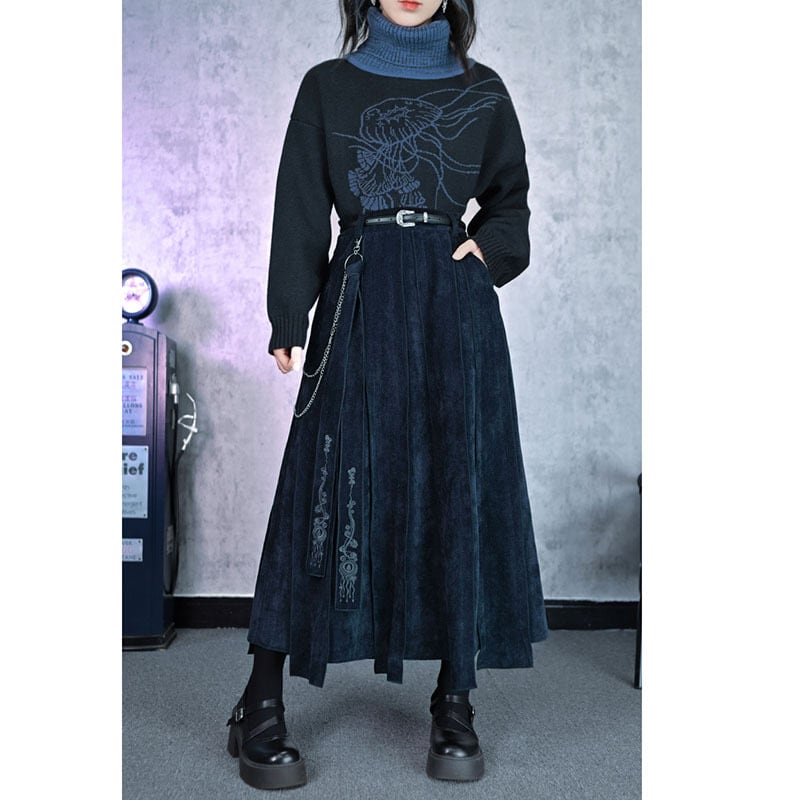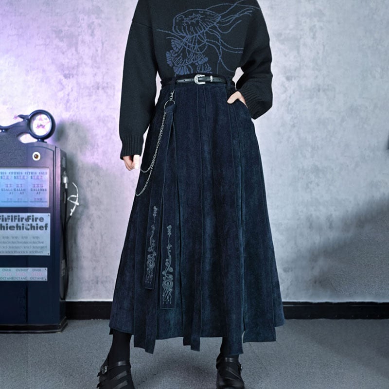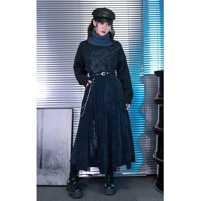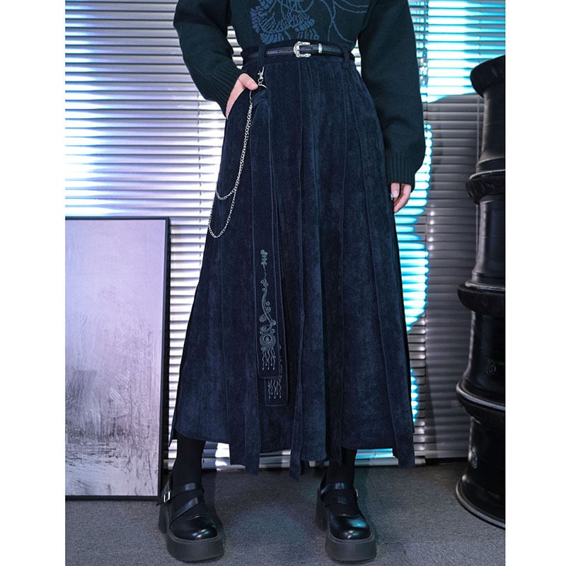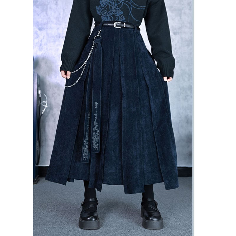 【古怪舍---藍眼淚シリーズ】★チャイナ風スカート★ ボトムス レディース 切り替え 厚て ネイビー