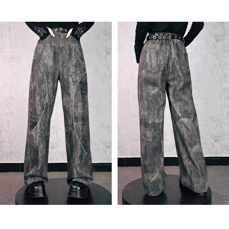 【古怪舍---永生旋律シリーズ】★チャイナ風ズボン★ ボトムス デニムパンツ コットン 切り替え レトロ