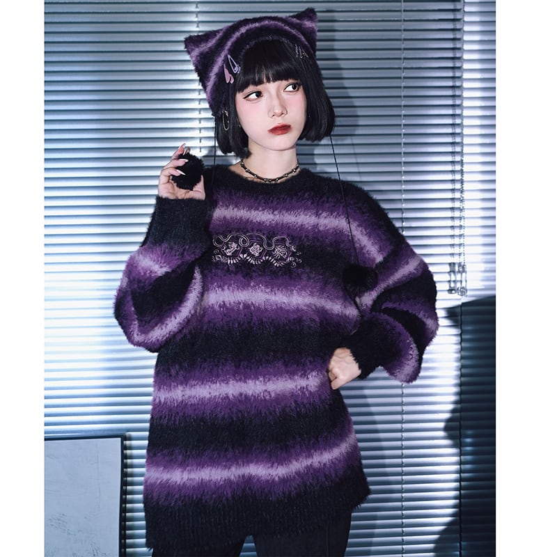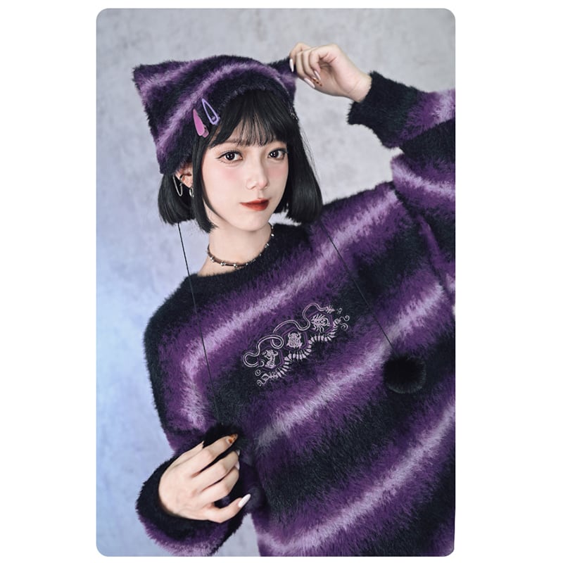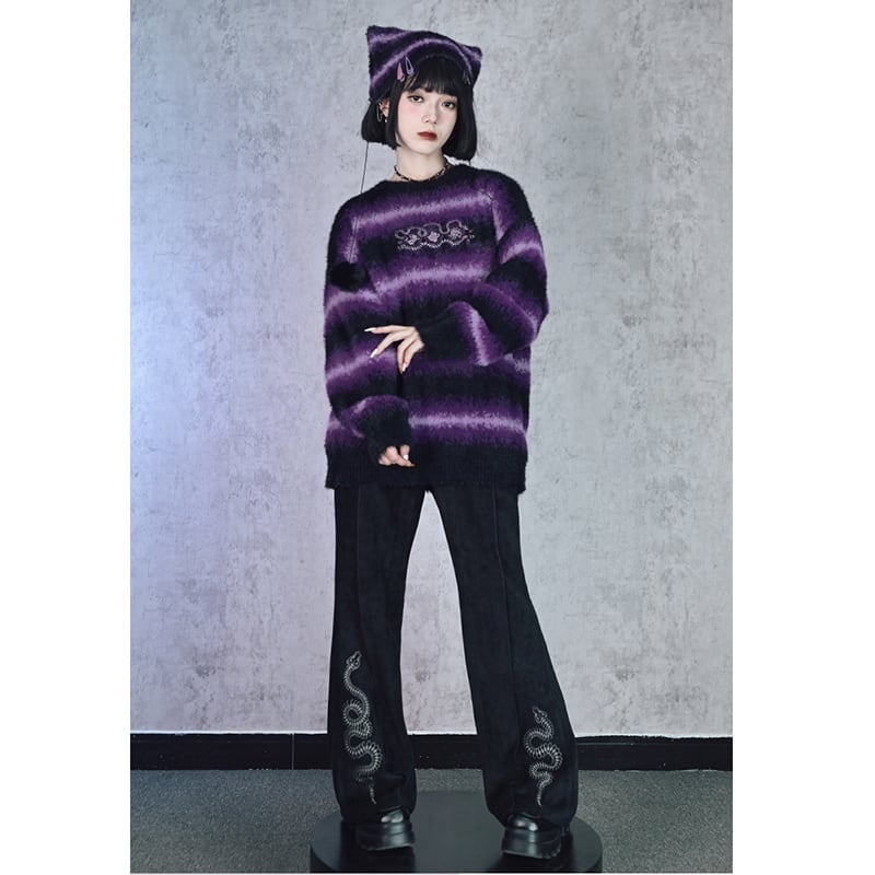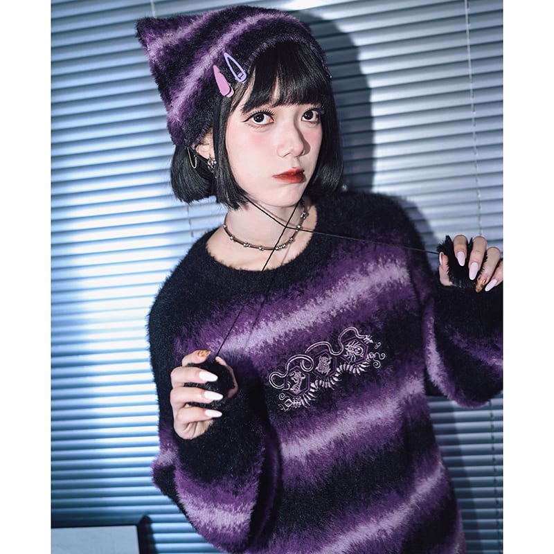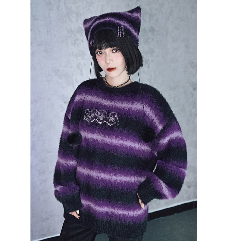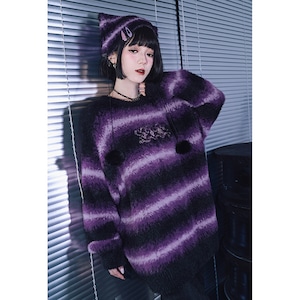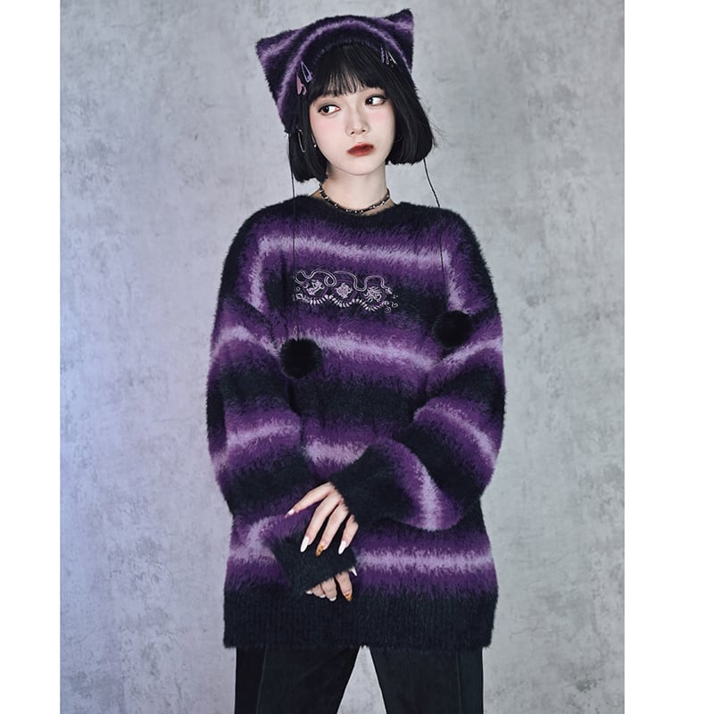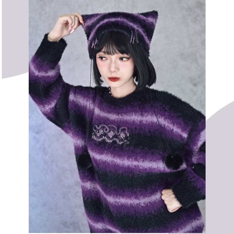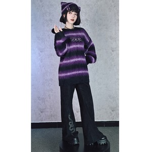 【古怪舍---五毒シリーズ】★チャイナ風トップス★ セーター ニットトップス レディース ラウンドネック 横縞 縞模様 配色
