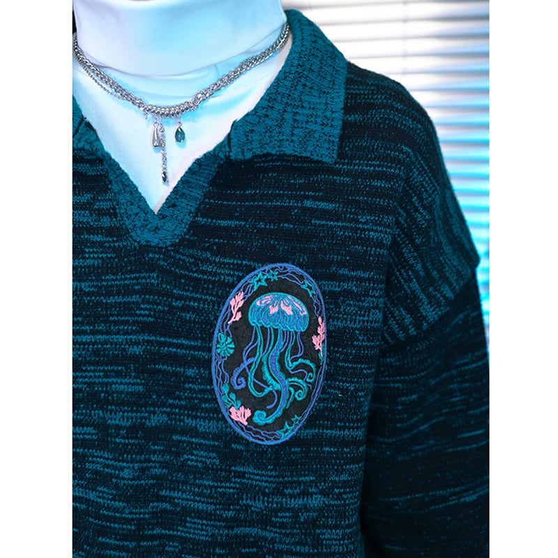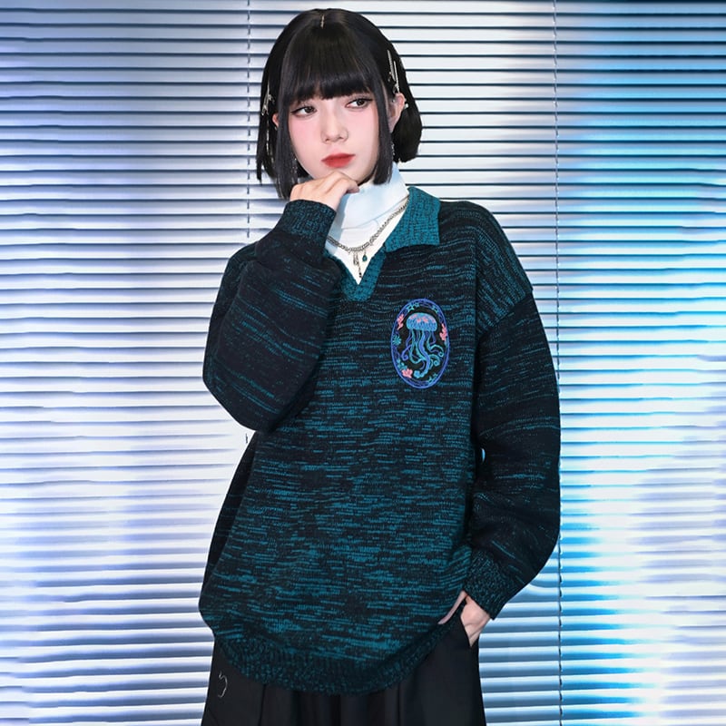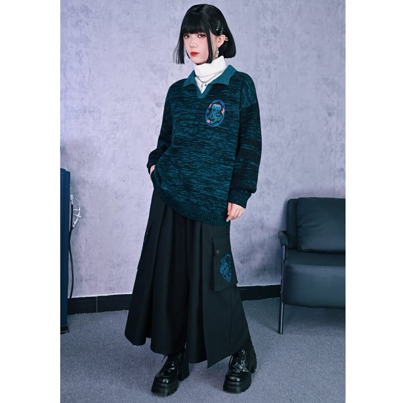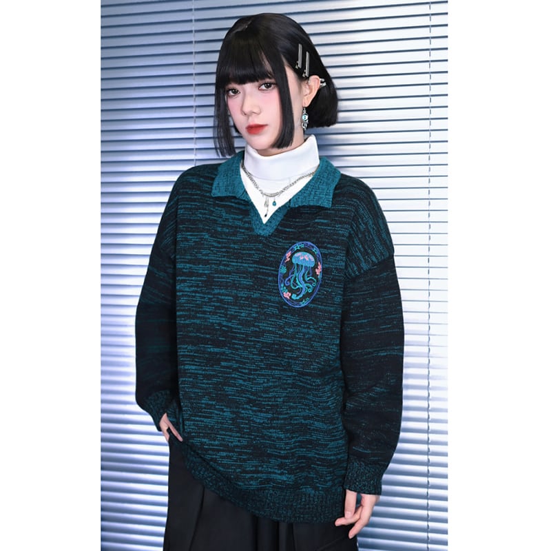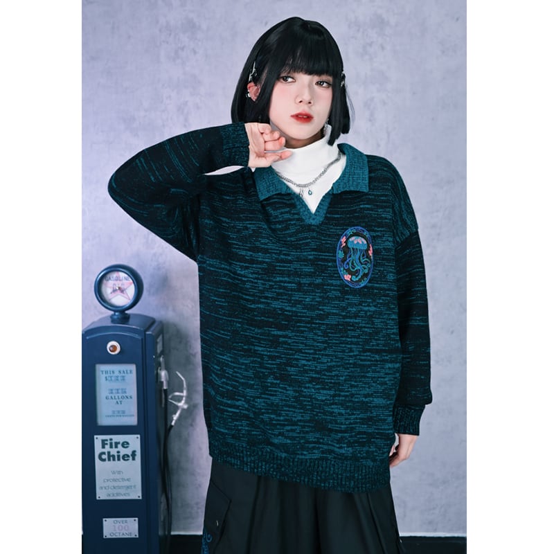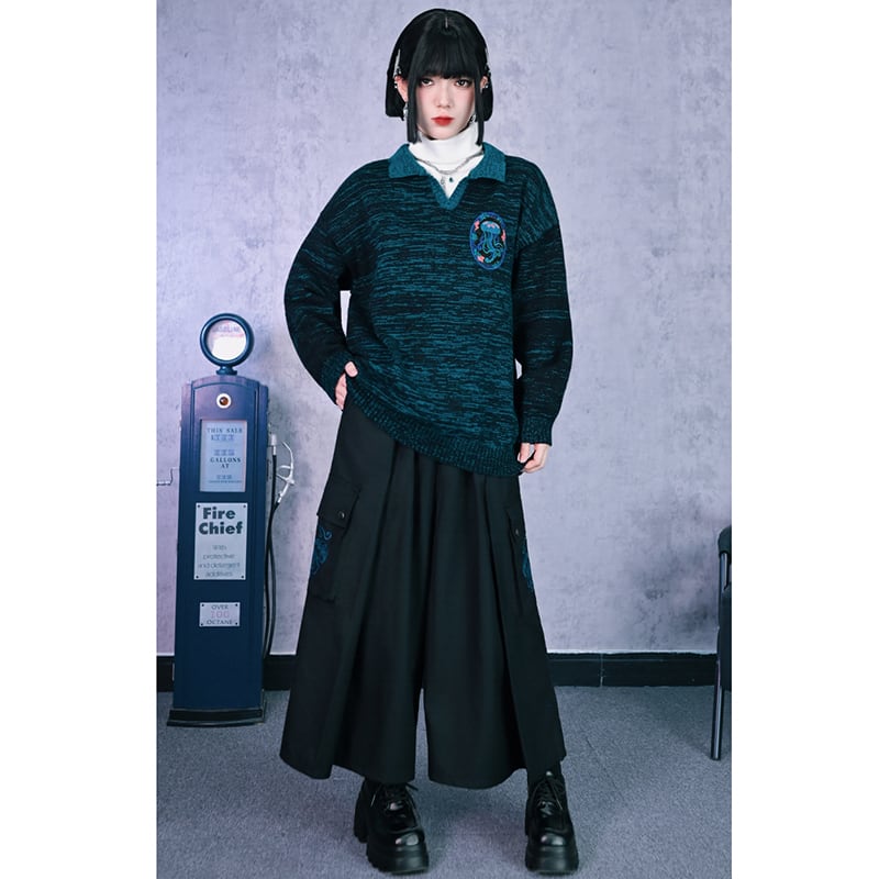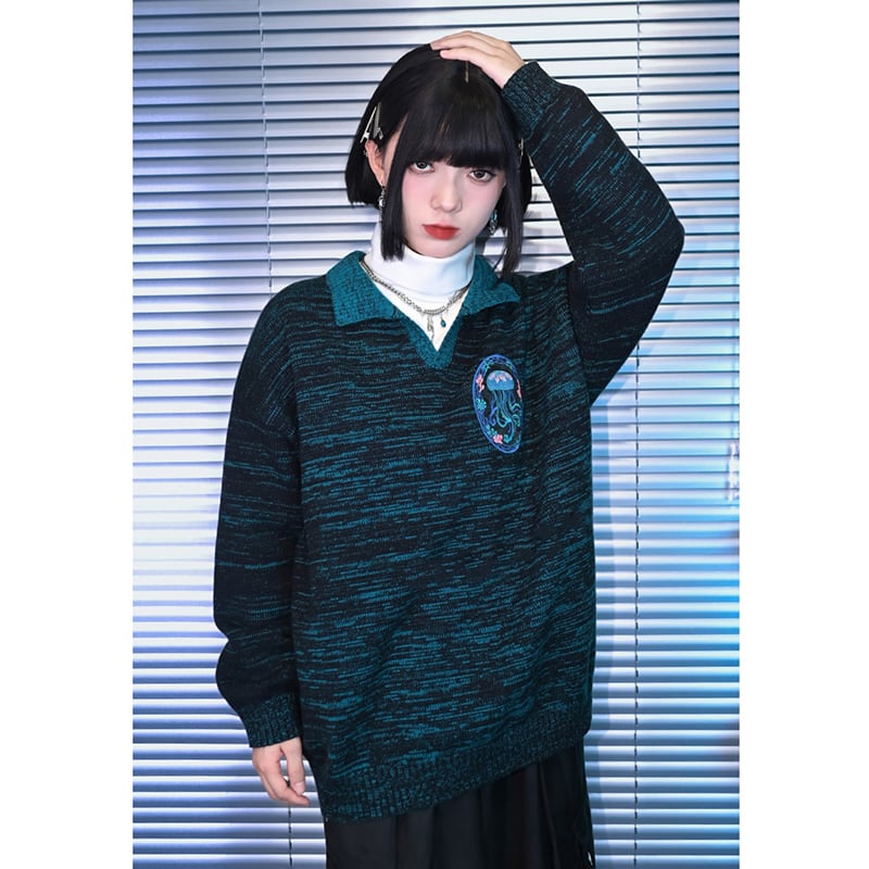 【古怪舍---藍界浮熒シリーズ】★チャイナ風トップス★ セーター ニットトップス レディース レトロ