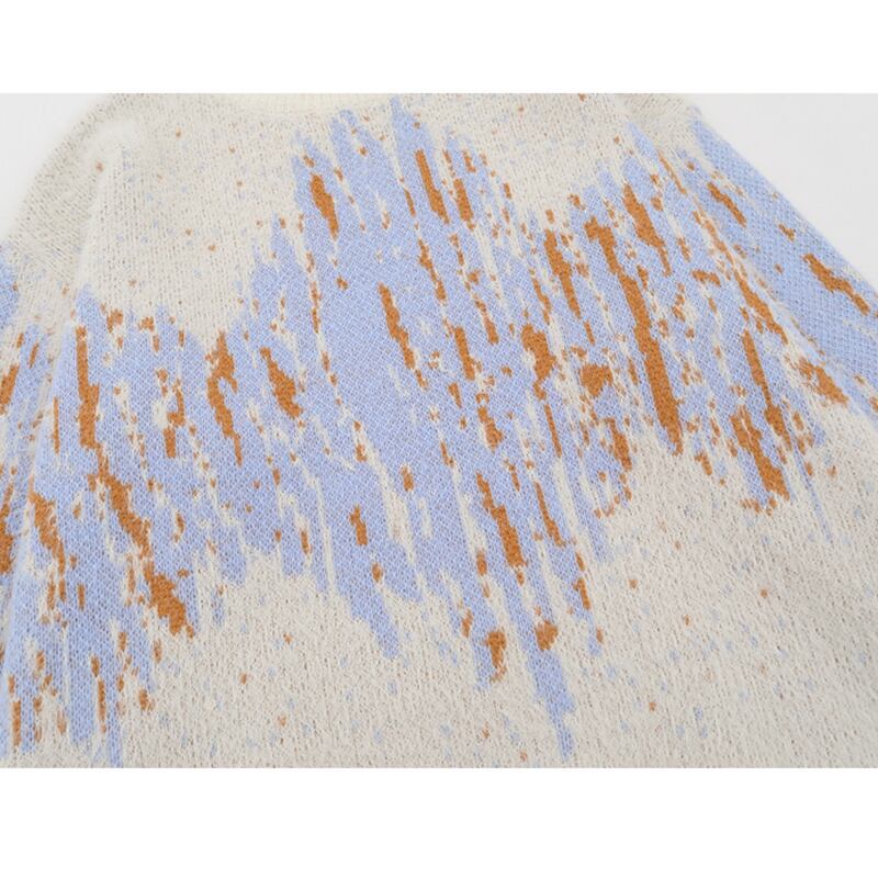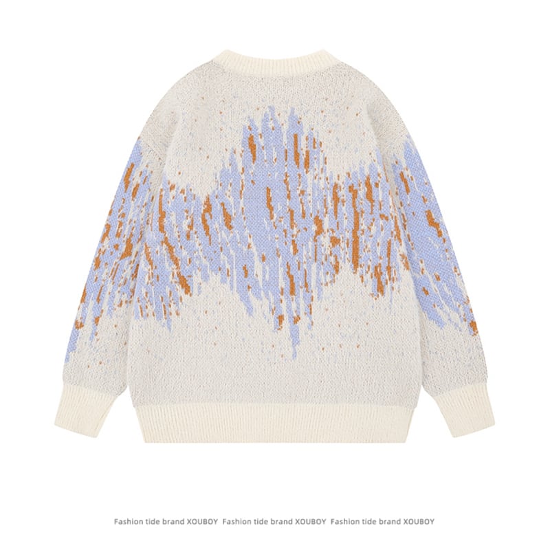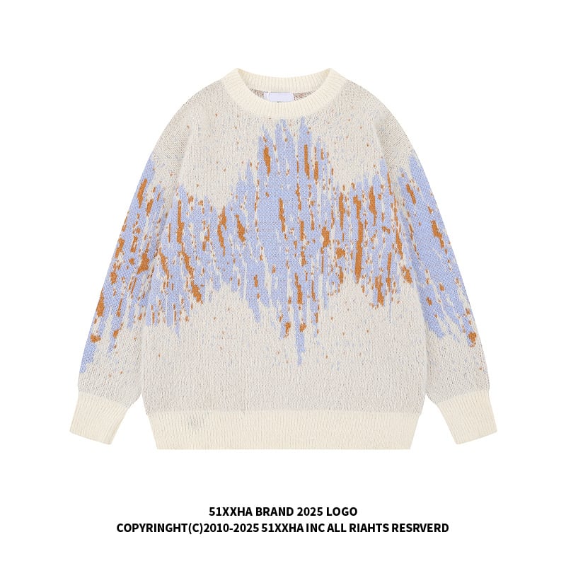 【51XIHAシリーズ】★セーター★ 2color ニットトップス 男女兼用 メンズ 個性的 配色 かっこいい ラウンドネック 黒 白