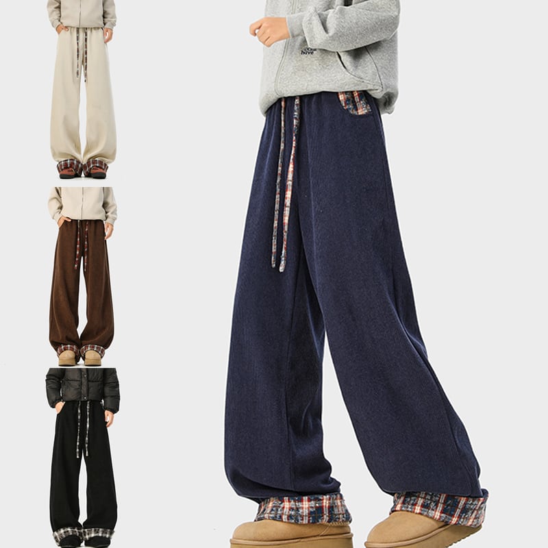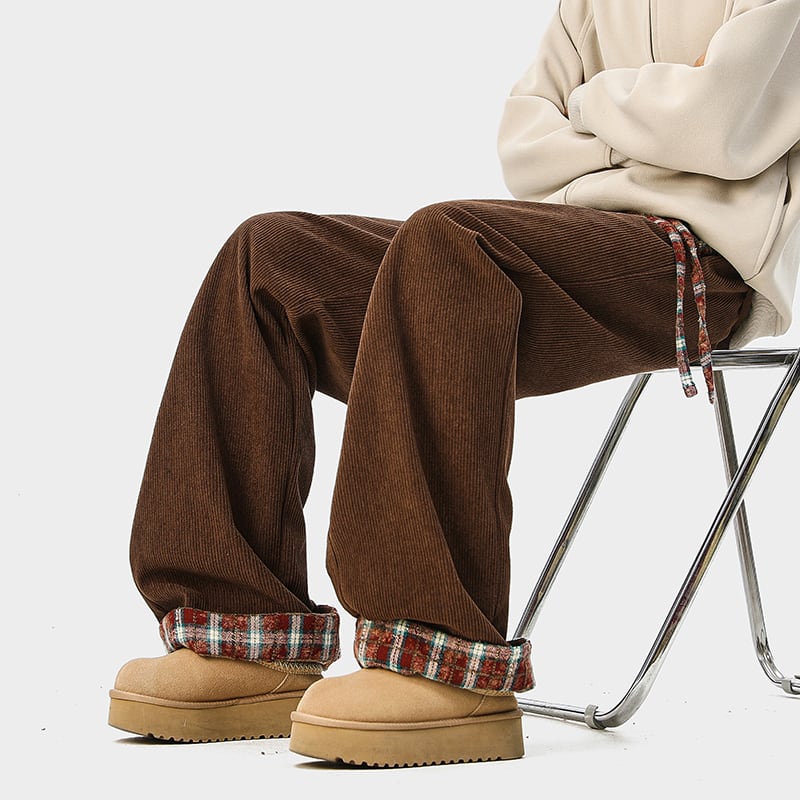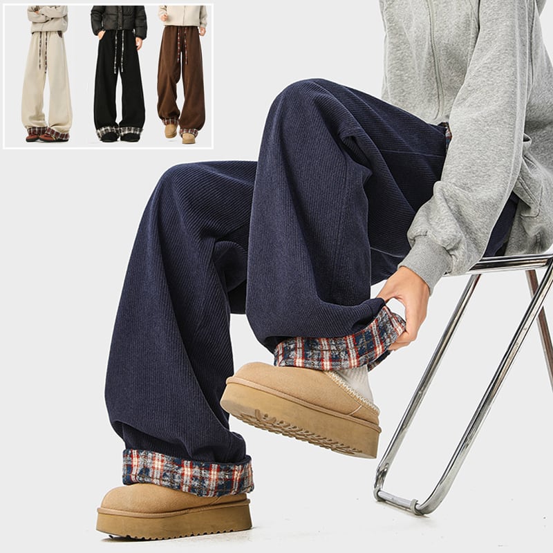 【逃離地球シリーズ】★カジュアルパンツ★ 4color 裏起毛 ボトムス ズボン コーデュロイ 男女兼用 メンズ チェック柄