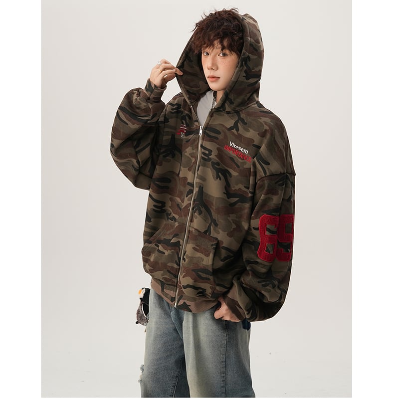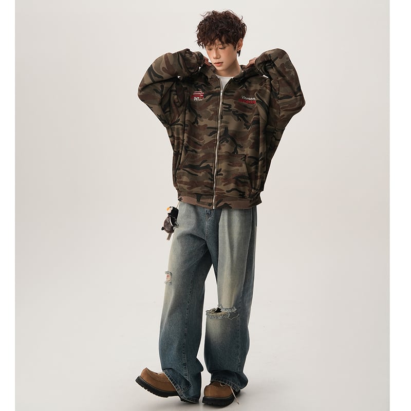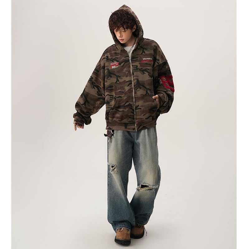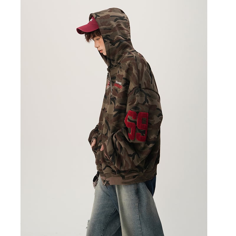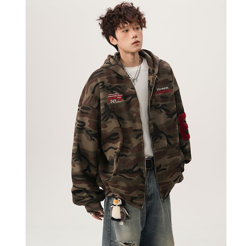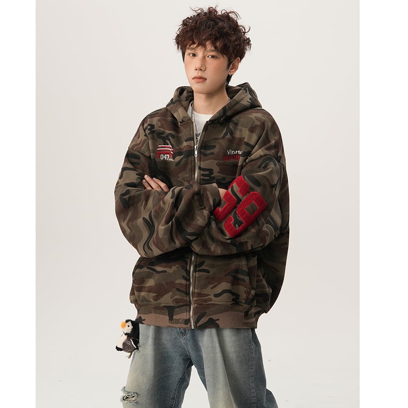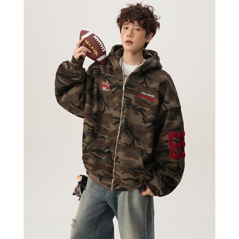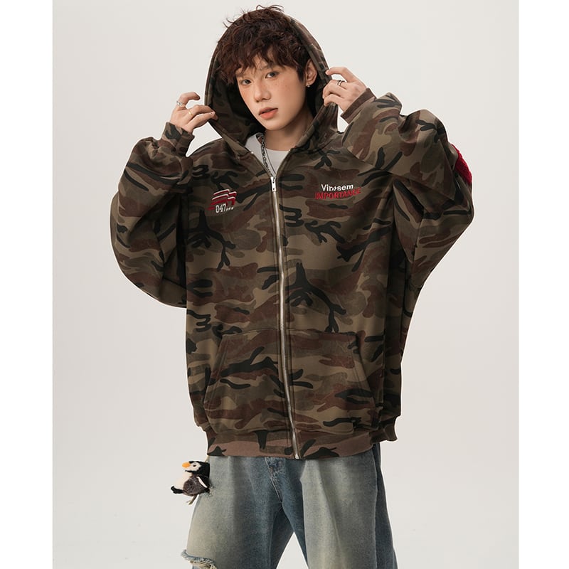 【Qotriockシリーズ】★アウター★ ジャケット ジップパーカー 男女兼用 メンズ 迷彩 レトロ カジュアル