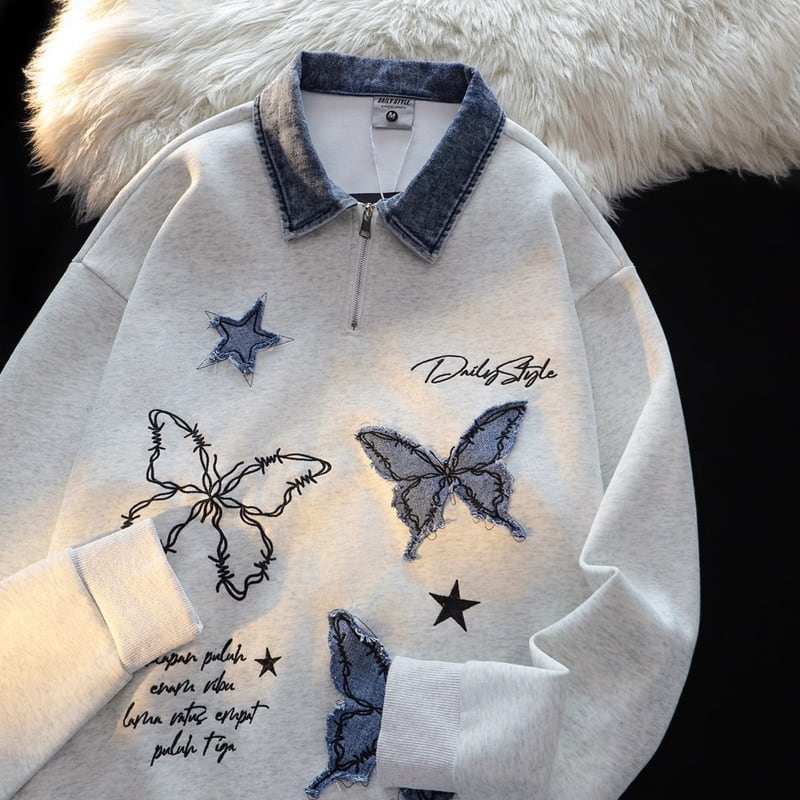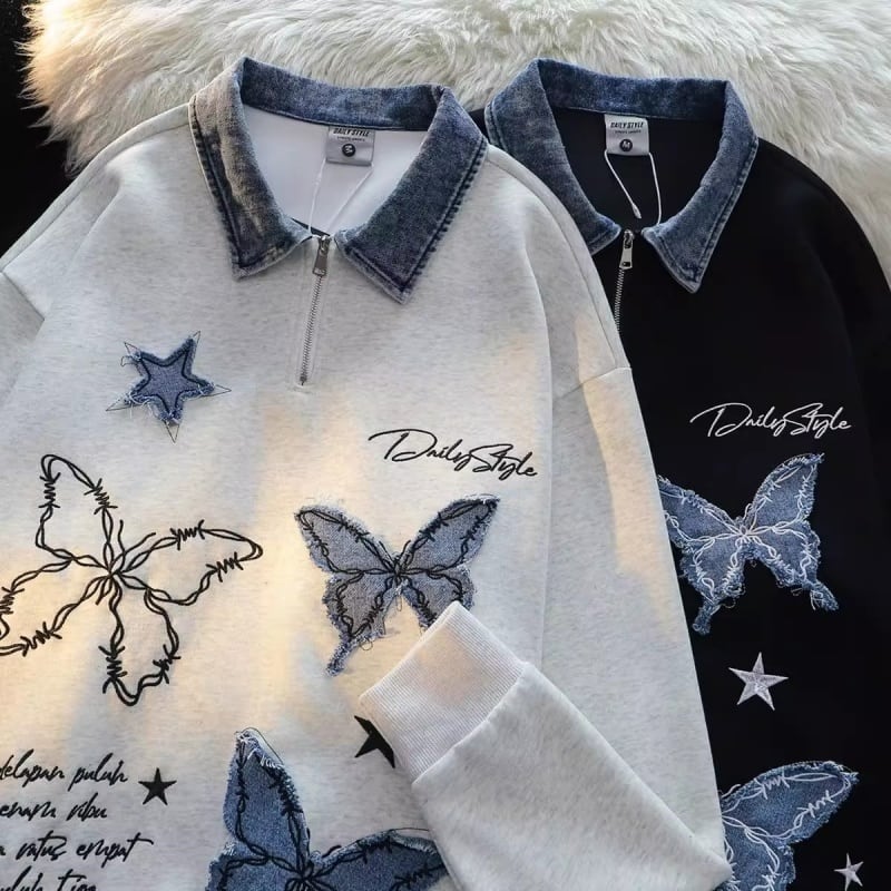 【SLTシリーズ】★POLOシャツ★ 2color トップス 男女兼用 メンズ 星 蝶々 合わせやすい カジュアル