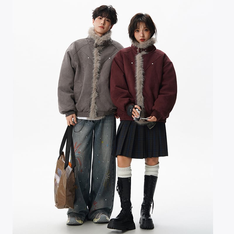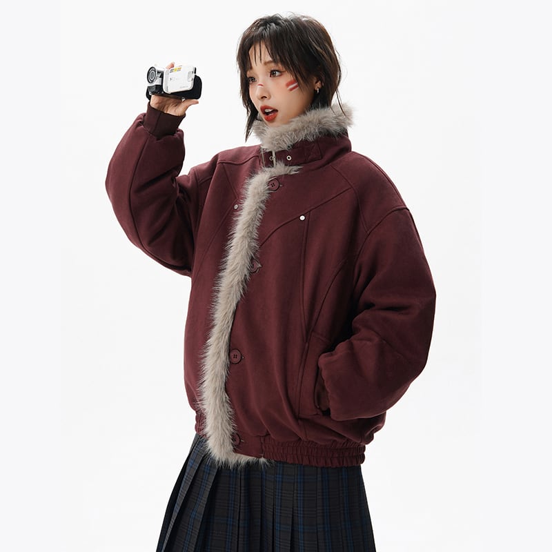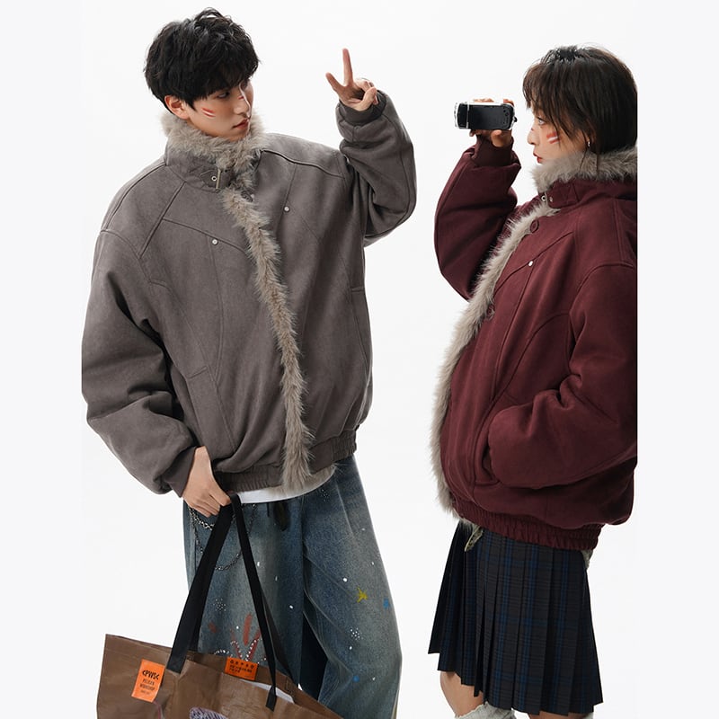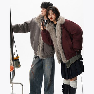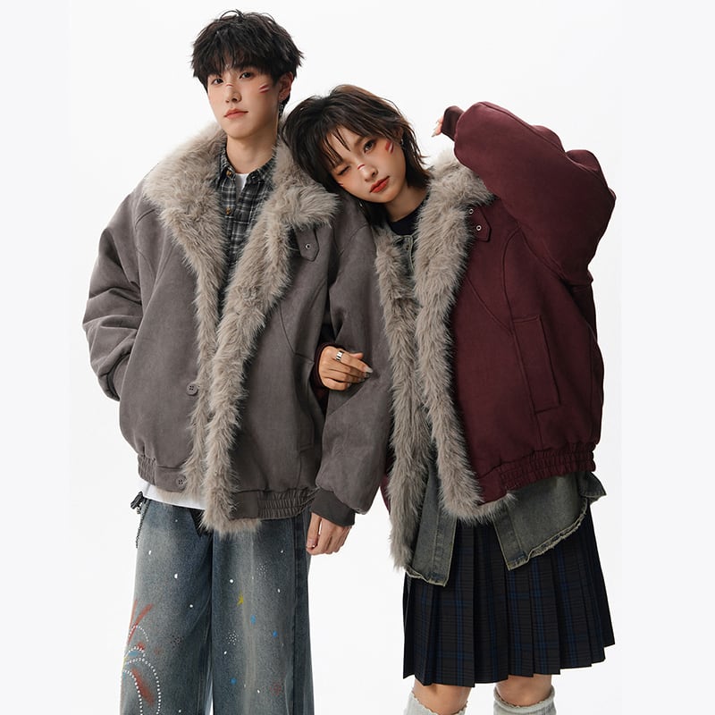【V37シリーズ】★冬用コート★ 3color アウター 男女兼用 メンズ 綿入れコート 暖か 黒 赤 灰 ブラック グレー ワインレッド