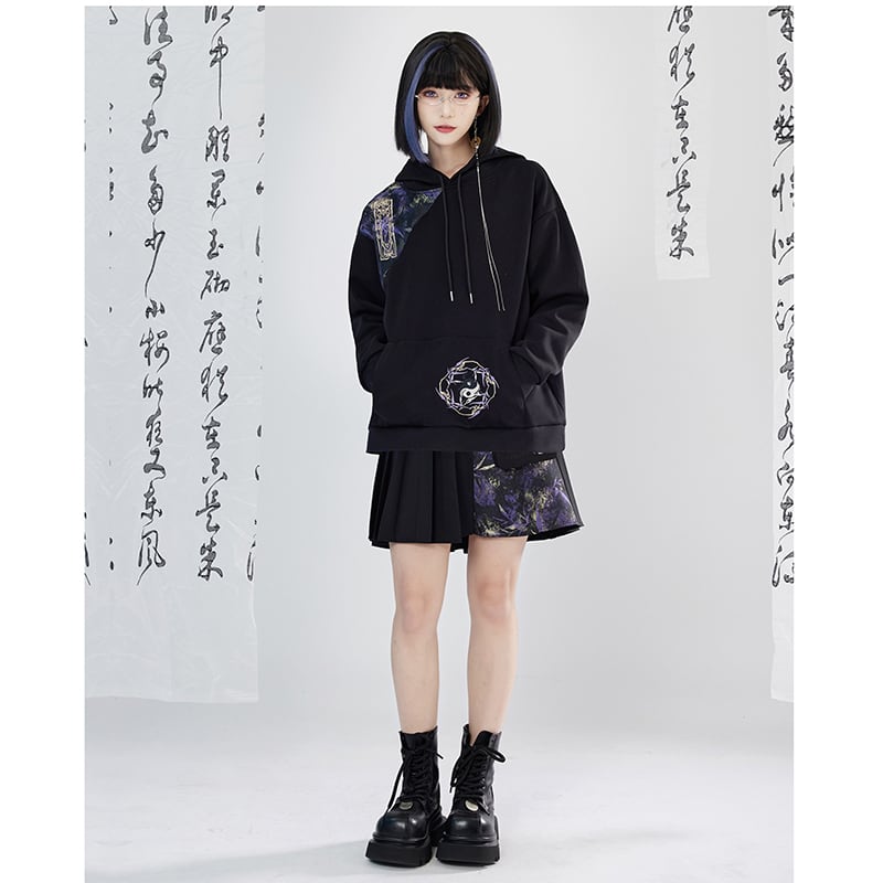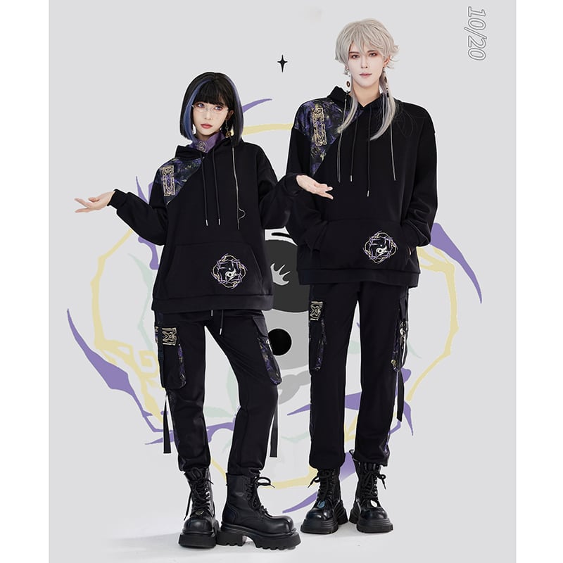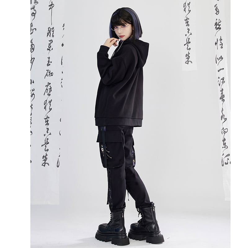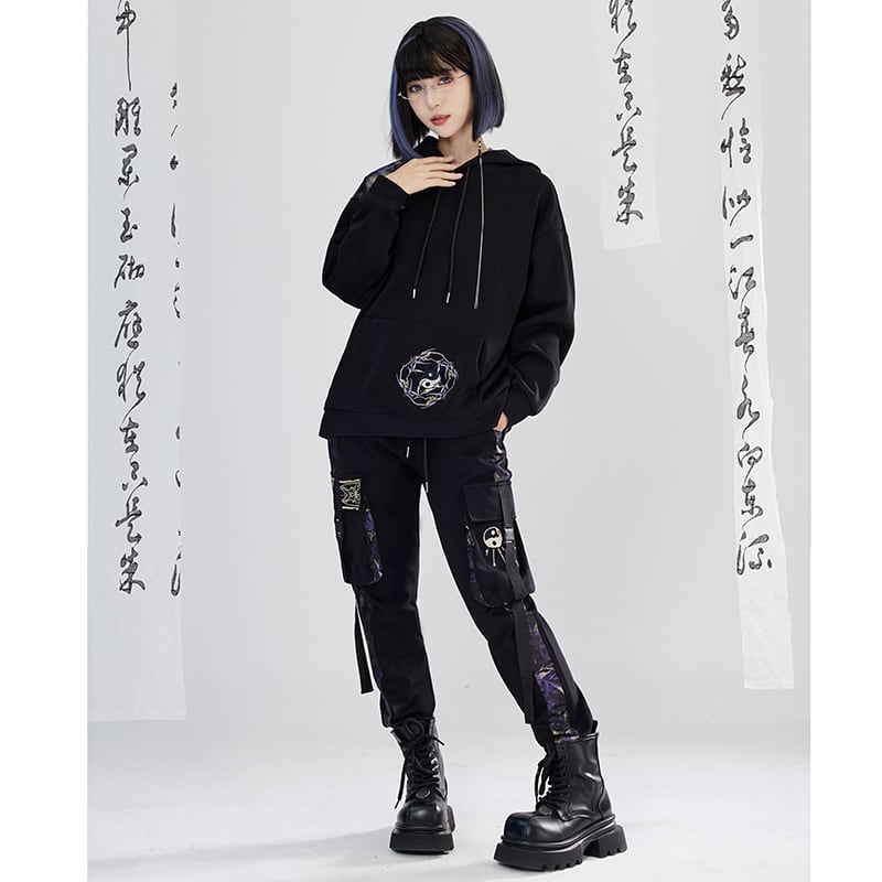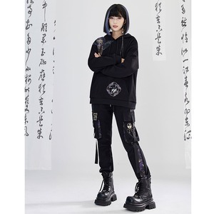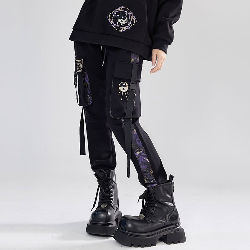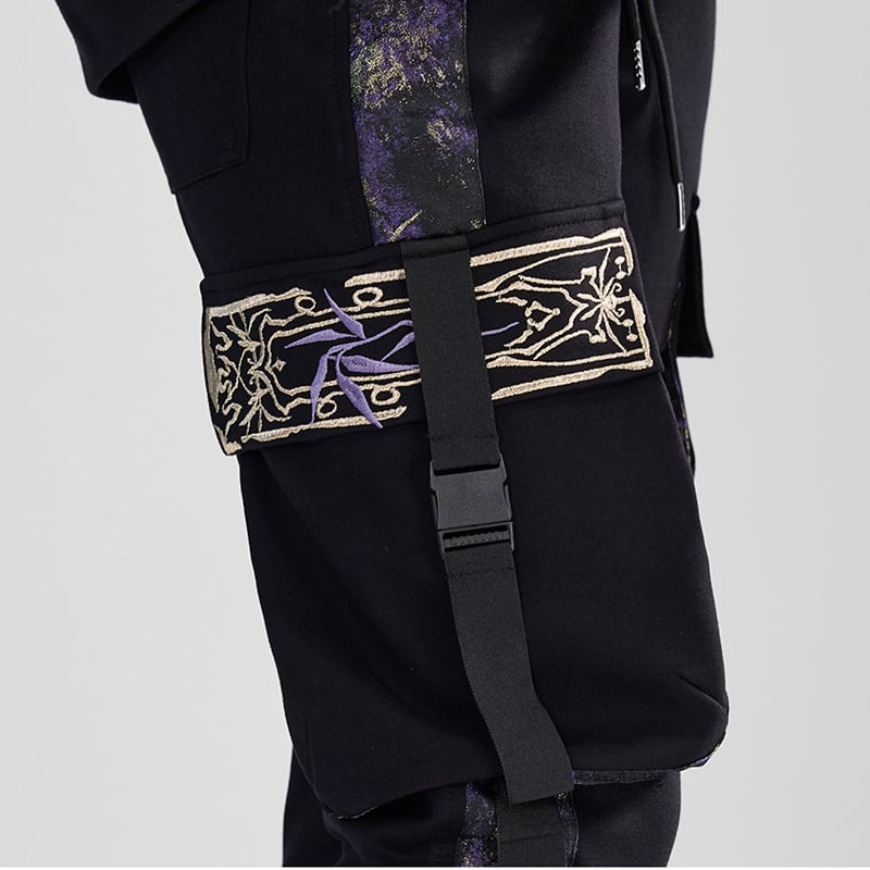 【卿棠---蒼竹問道シリーズ】★チャイナ風ズボン★ ズボン ボトムス 男女兼用 メンズ 切り替え 黒 紫