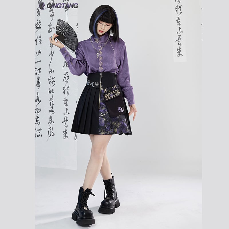 【卿棠---蒼竹問道シリーズ】★チャイナ風スカート★ ボトムス ミニスカート 切り替え 可愛い 合わせやすい