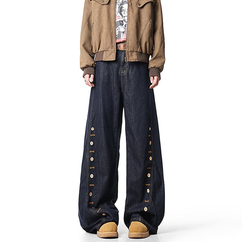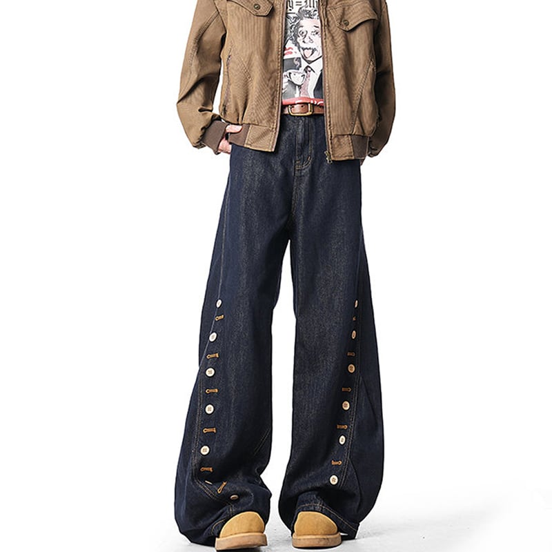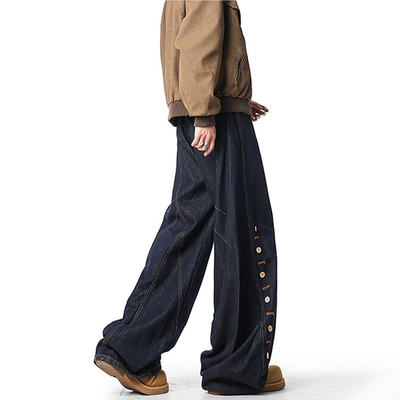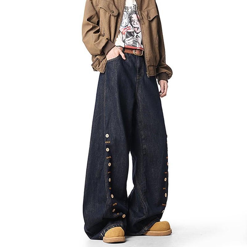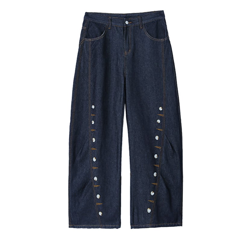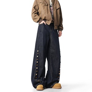 【MJJMシリーズ】★デニムパンツ★ ズボン ボトムス 男女兼用 メンズ ボタンデザイン ブルー 青い