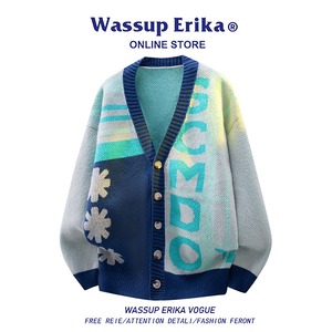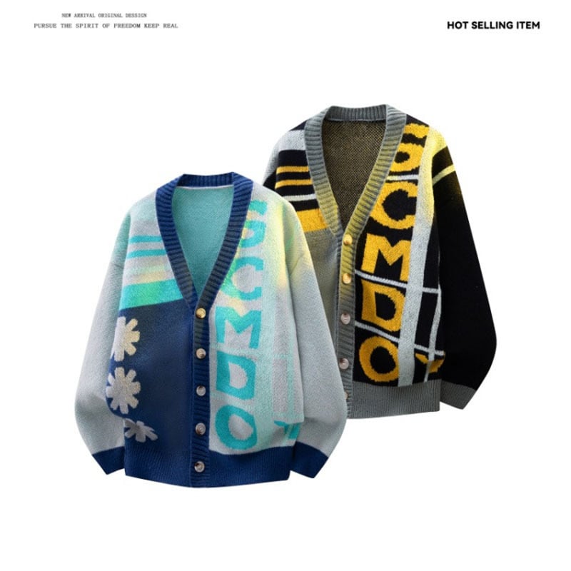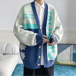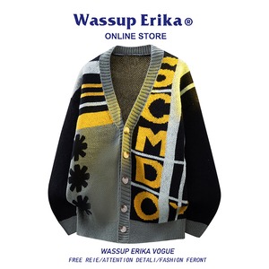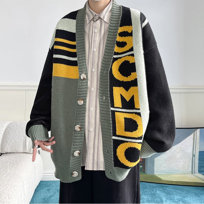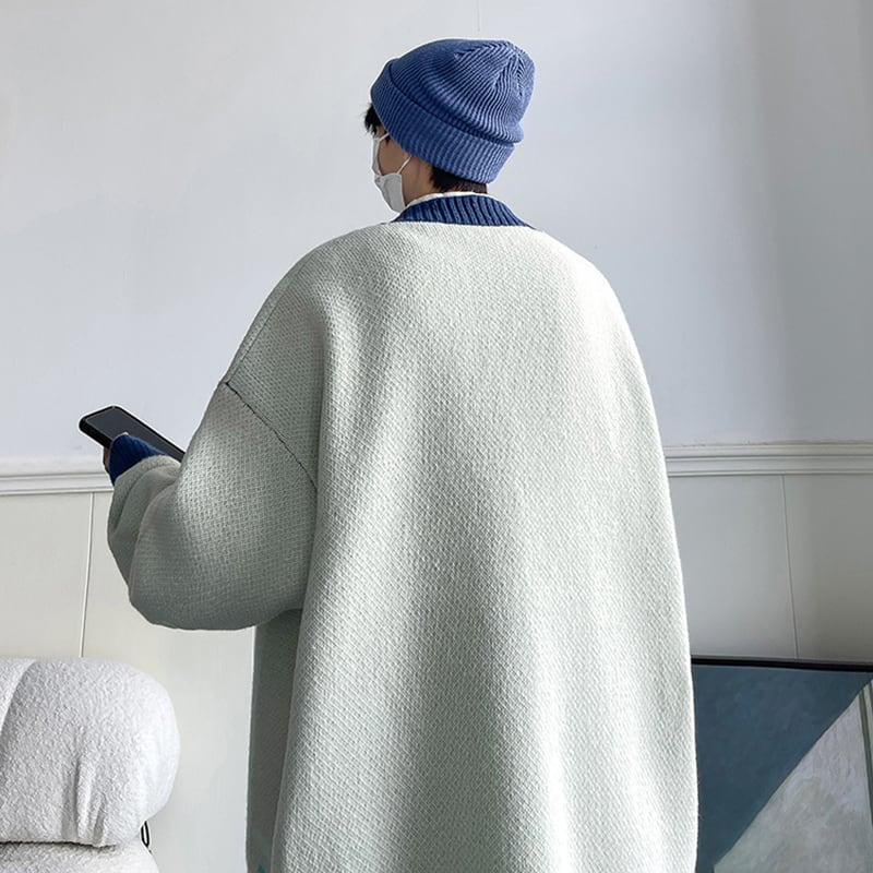 【WSシリーズ】★カーディガン★ 2color セーター ニットトップス 男女兼用 メンズ 大きいサイズ 配色 Vネック