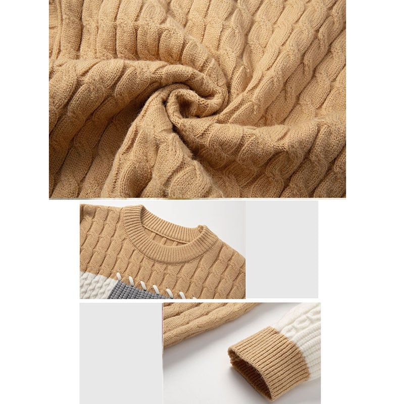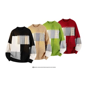 【WSシリーズ】★セーター★ 4color ニットトップス 男女兼用 メンズ 大きいサイズ 配色 ラウンドネック 赤 緑 黒