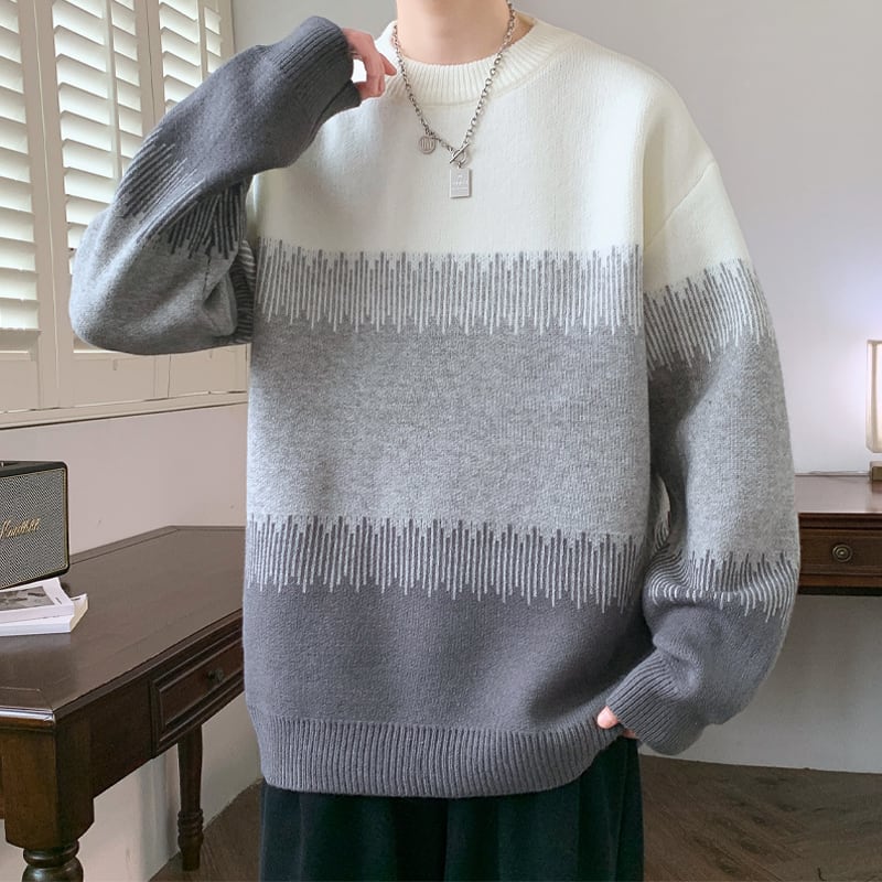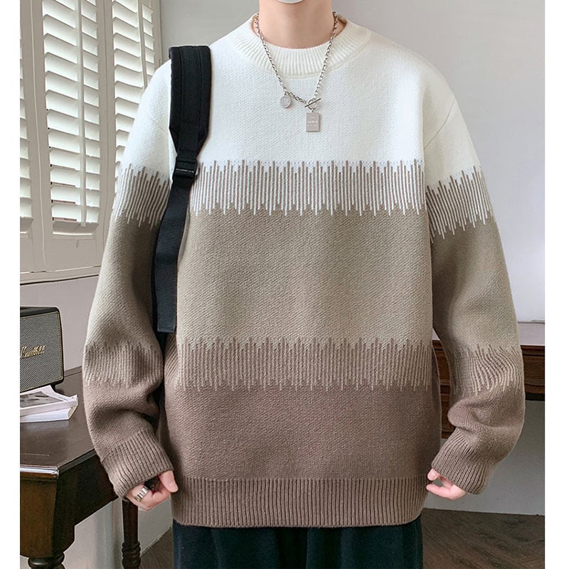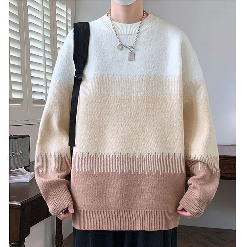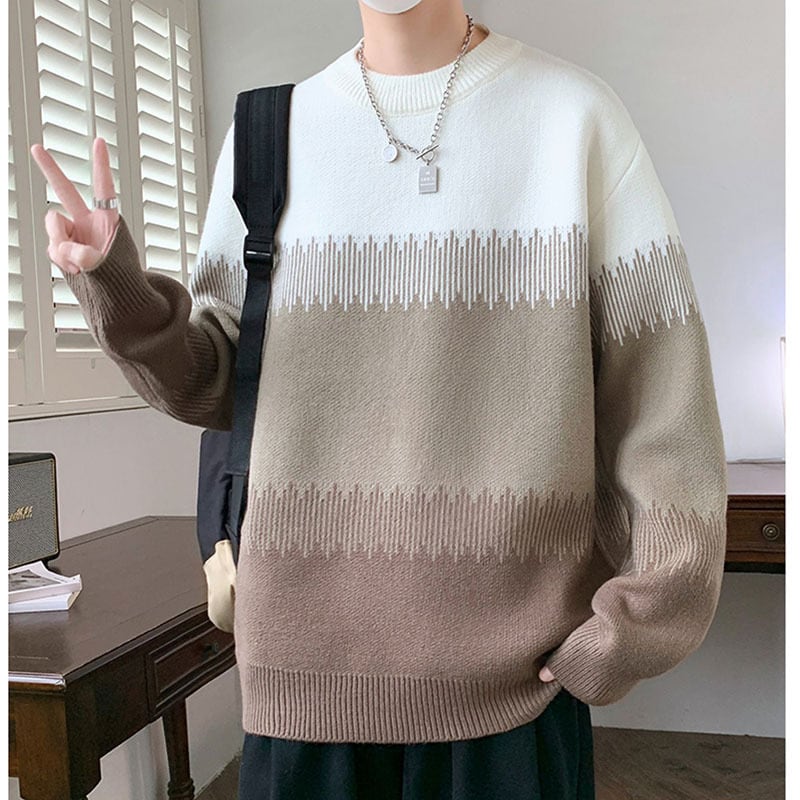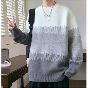 【ZUOFEILIシリーズ】★セーター★ 3color ニットトップス カジュアル 男女兼用 メンズ 配色 ラウドネック