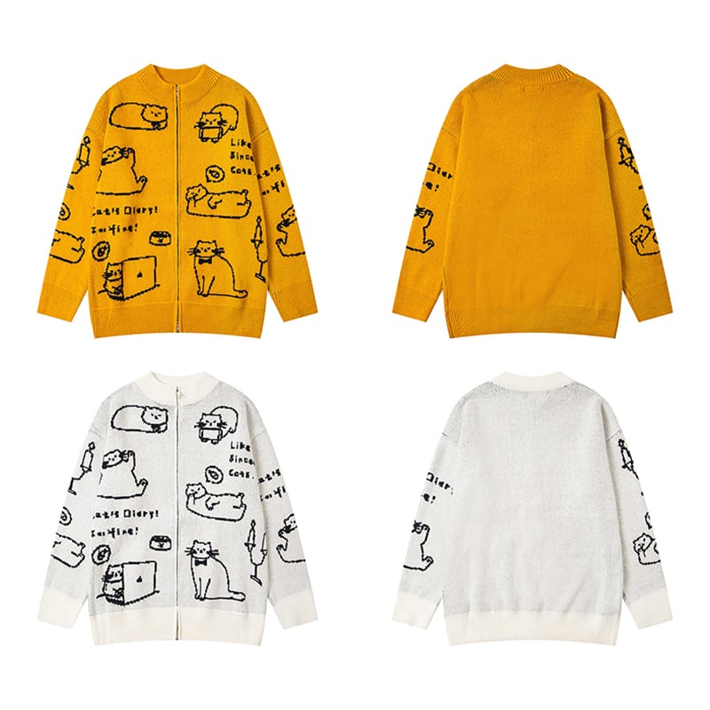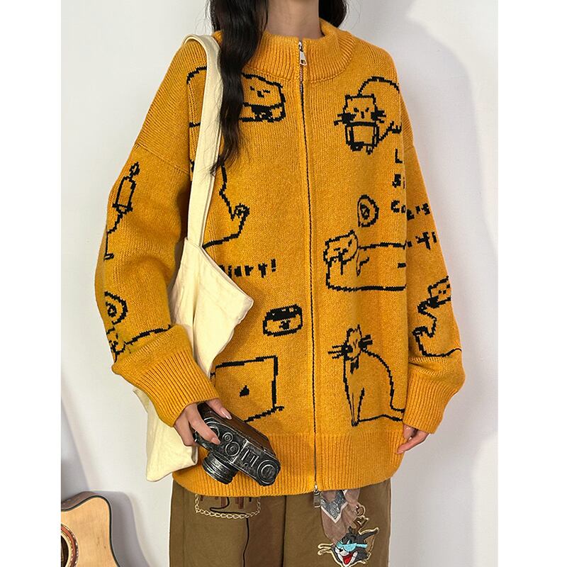 【UATONLINEシリーズ】★カーディガン★ 2color ニットトップス セーター アウター 男女兼用 メンズ 猫 ねこ ネコ