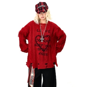 【LHSENシリーズ】★セーター★ 2color ニットトップス 男女兼用 メンズ ハット ダメージ加工 レトロ