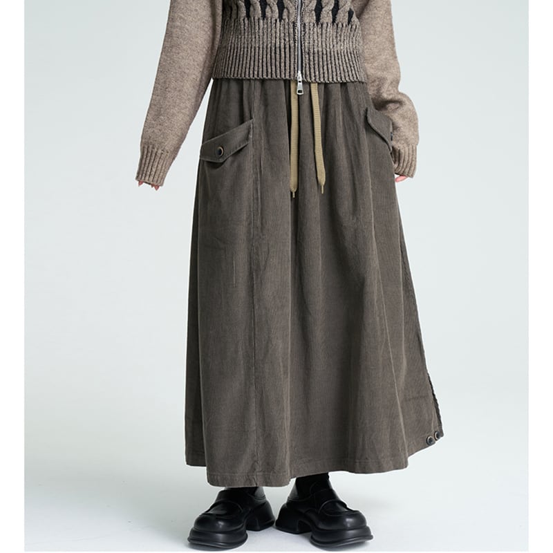 【陸與山嶼シリーズ】★スカート★ ボトムス レディース コーデュロイ ウエストゴム ポケット有り