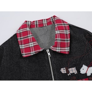 【UATONLINEシリーズ】★ジャケット★ 2color アウター 男女兼用 メンズ デニム 切り替え チェック柄 黄 赤