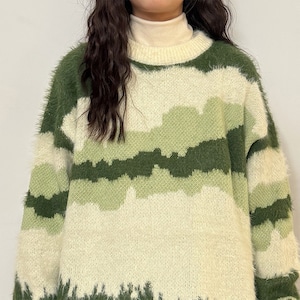 【UATONLINEシリーズ】★セーター★ 2color ニットトップス 男女兼用 メンズ レディース 配色 ラウンドネック 緑 黒