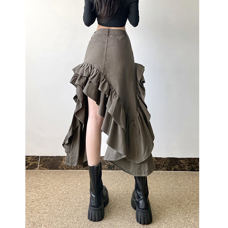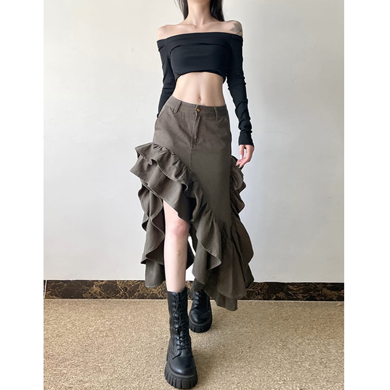 【Gagaoptシリーズ】★スカート★ ボトムス セクシー 着痩せ レディース 不規則 デザイン性有り ブラウン