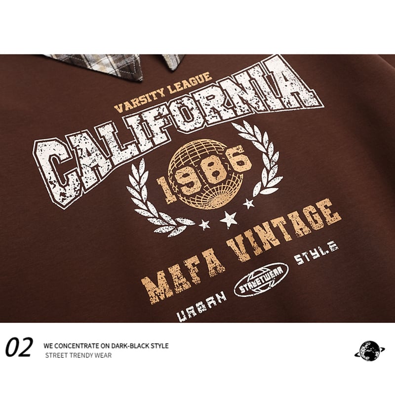 【UATONLINEシリーズ】★パーカー★ 2color トップス 男女兼用 メンズ 切り替え フェイクレイヤード チェック柄