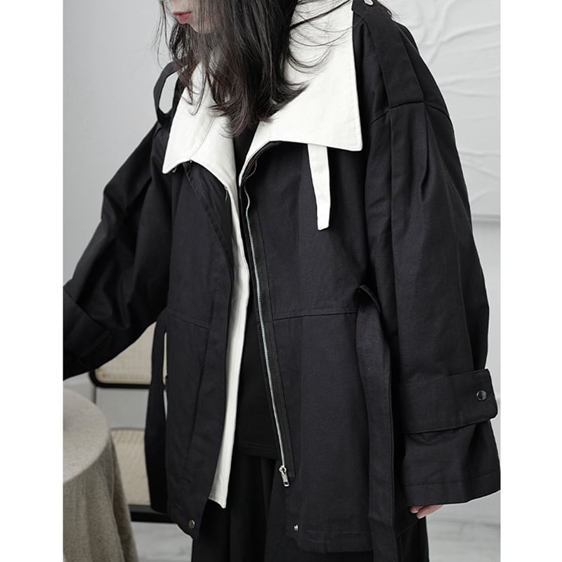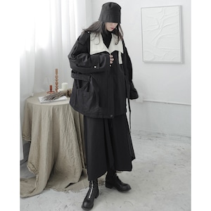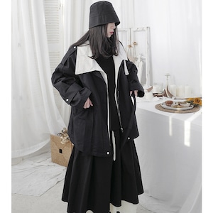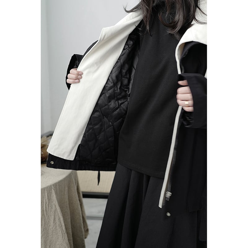 【隱覓シリーズ】★綿入れコート★ アウター 男女兼用 メンズ 配色 黒白 合わせやすい 厚て 暖か