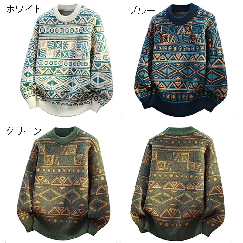 【GANGBOSHIシリーズ】★セーター★ 3color ニットトップス 男女兼用 メンズ レディース レトロ ラウンドネック エスニック風