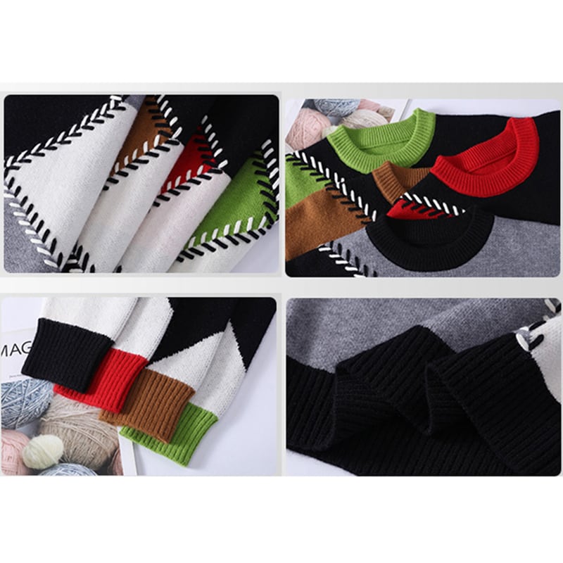 【GANGBOSHIシリーズ】★セーター★ 4color ニットトップス 男女兼用 メンズ レディース 配色 おしゃれ 赤 緑 黒