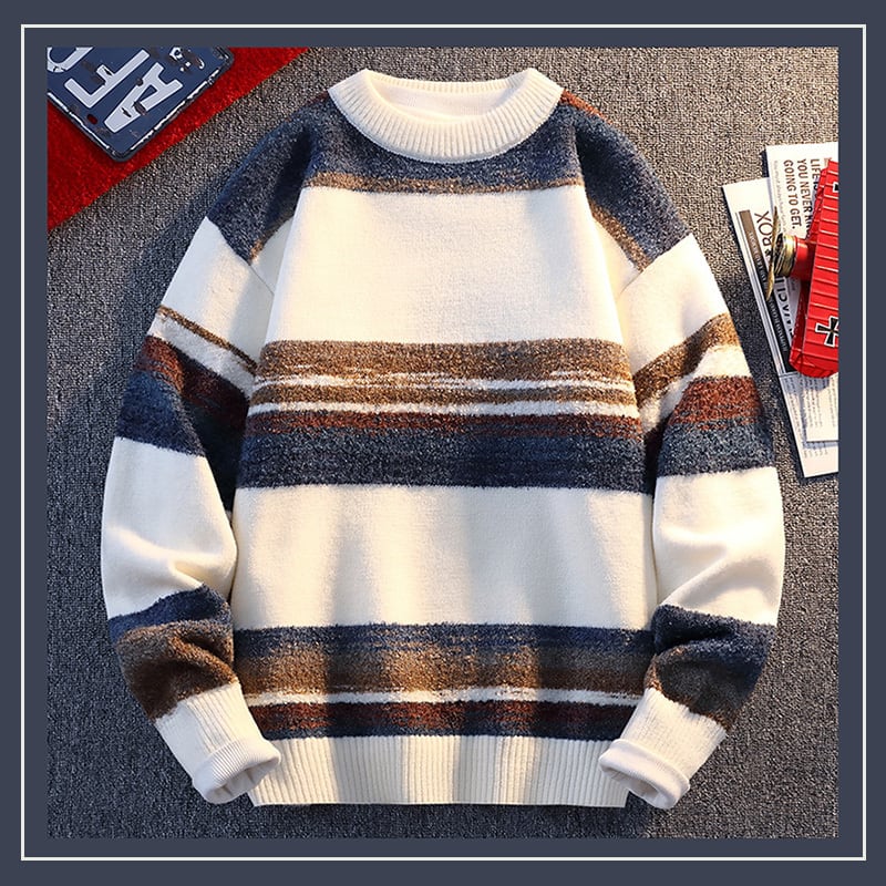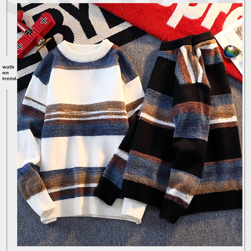 【GANGBOSHIシリーズ】★セーター★ 2color ニットトップス 男女兼用 メンズ レディース 配色 ラウンドネック 黒 白