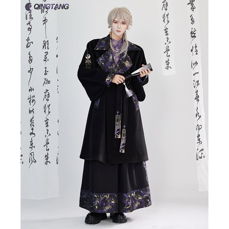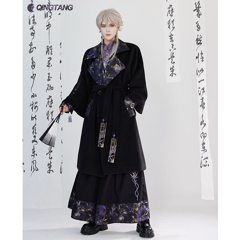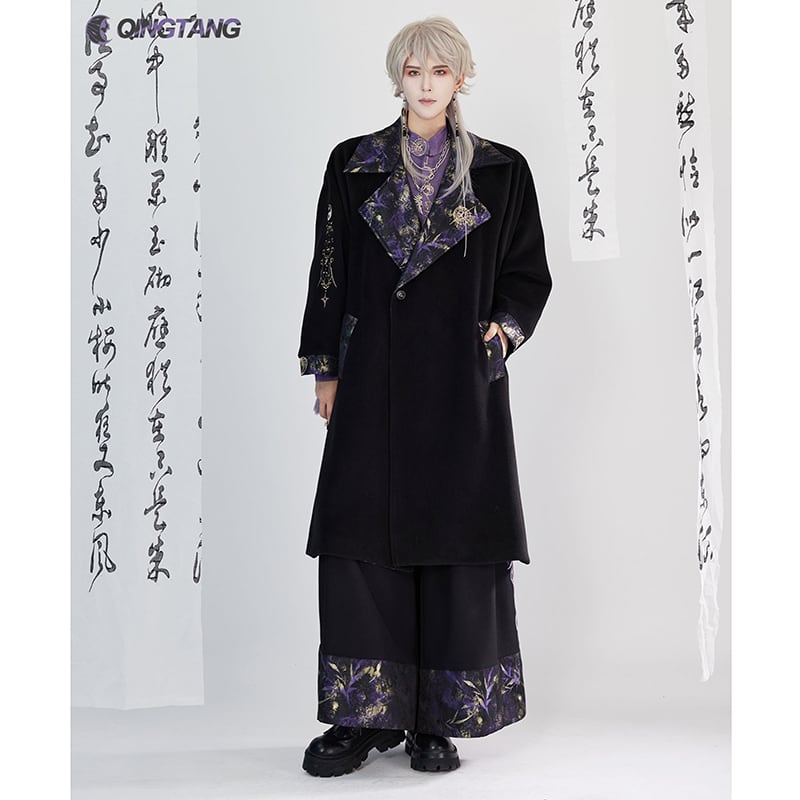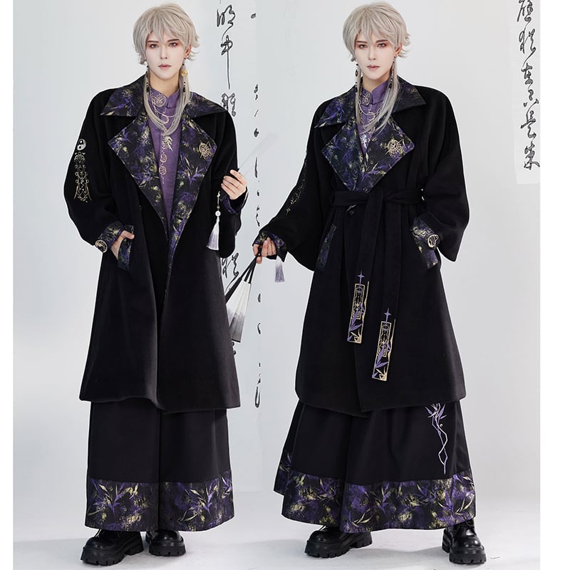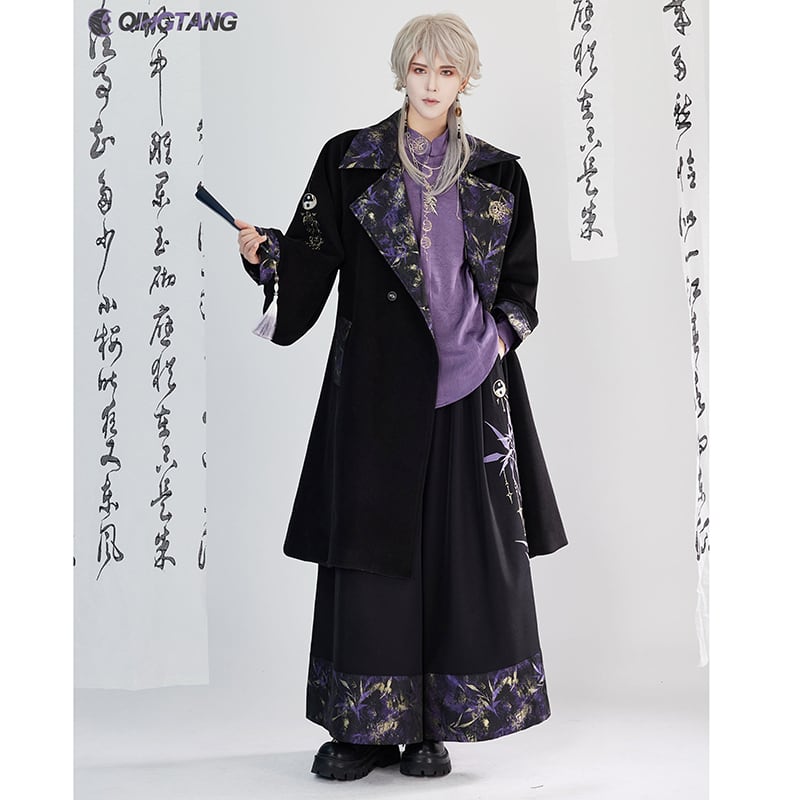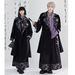 【卿棠---月相シリーズ】★チャイナ風コート★ ロングコート 男女兼用 メンズ 合わせやすい ブラック 黒い