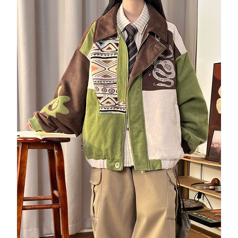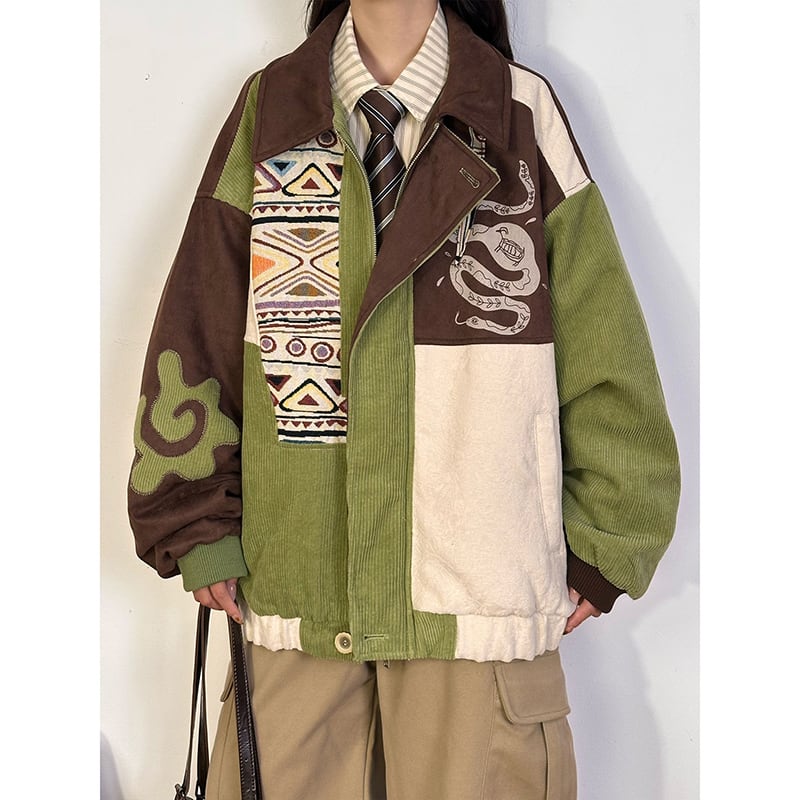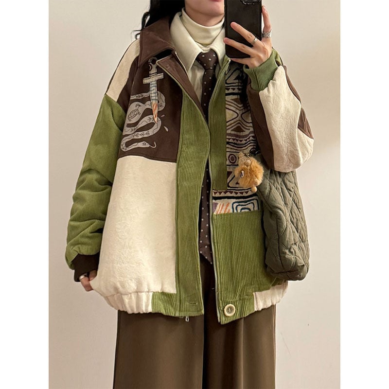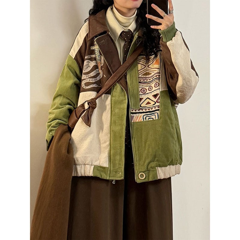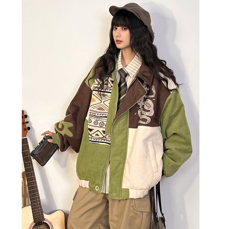 【UATONLINEシリーズ】★冬用コート★ アウター 綿入れコート 男女兼用 メンズ 厚て 暖か 配色 コーデュロイ グリーン 緑