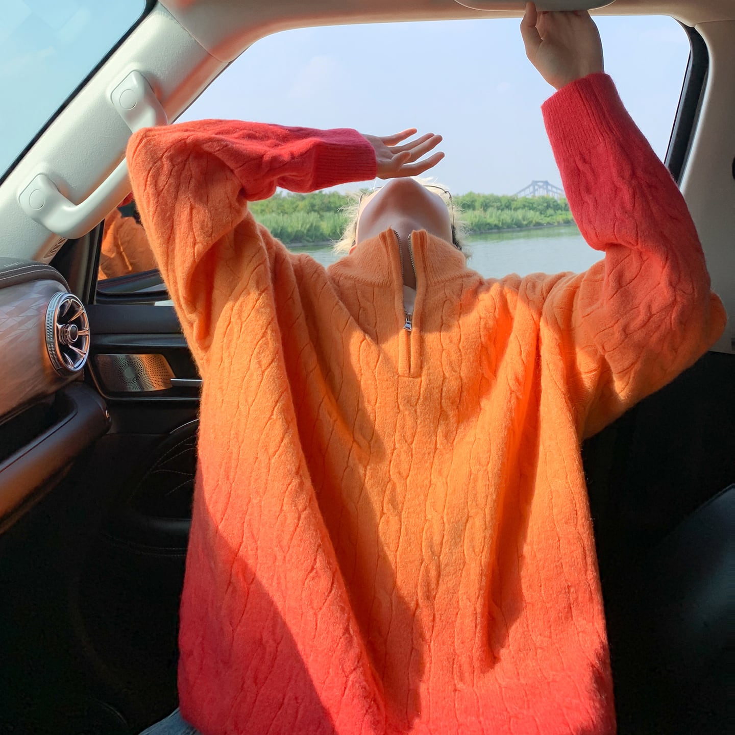 【XINGQISHIシリーズ】★セーター★ 3color ニットトップス 男女兼用 メンズ レディース スタンドネック グラデーション