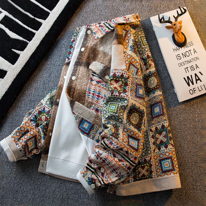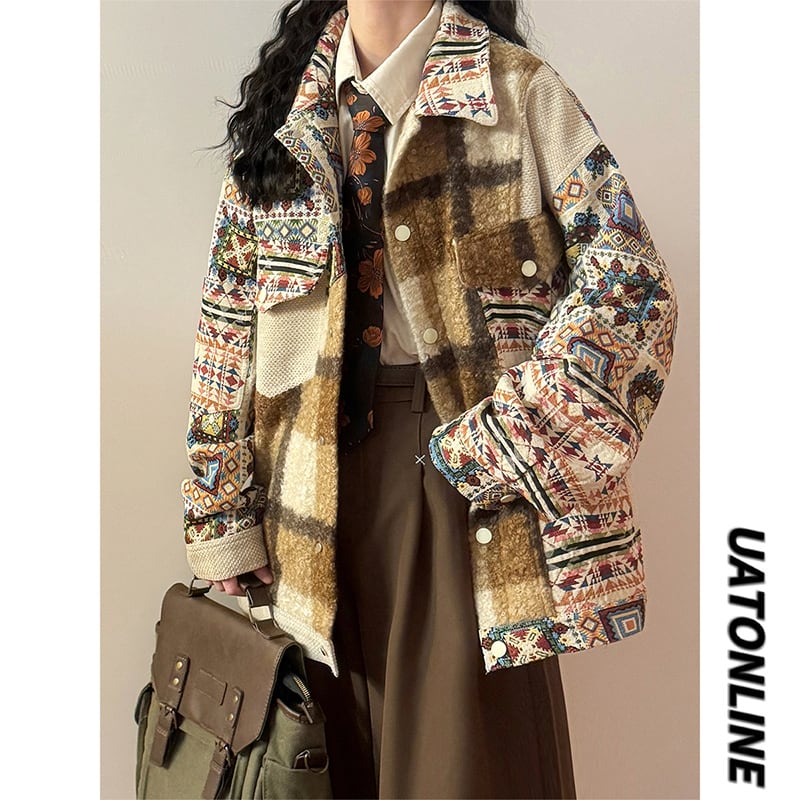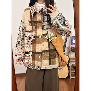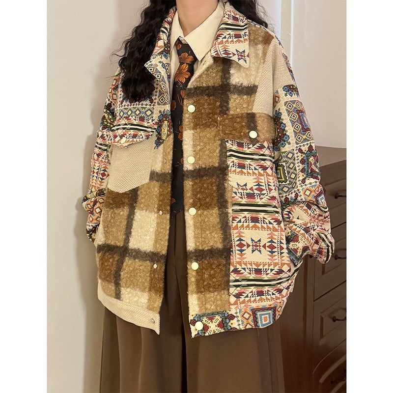 【UATONLINEシリーズ】★ジャケット★ アウター エスニック風 切り替え 男女兼用 メンズ 暖か チェック柄
