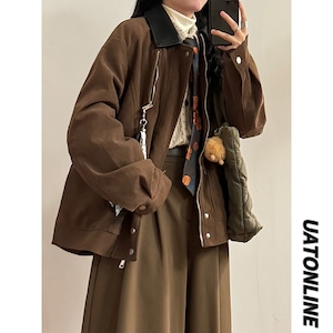 【UATONLINEシリーズ】★ジャケット★ アウター 男女兼用 メンズ コーデュロイ レトロ コーヒー色 カジュアル