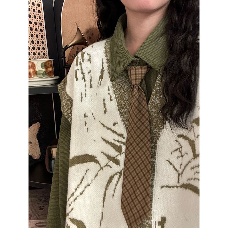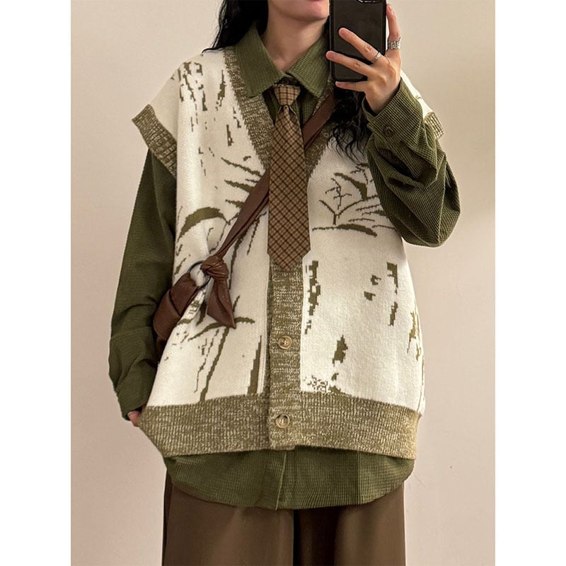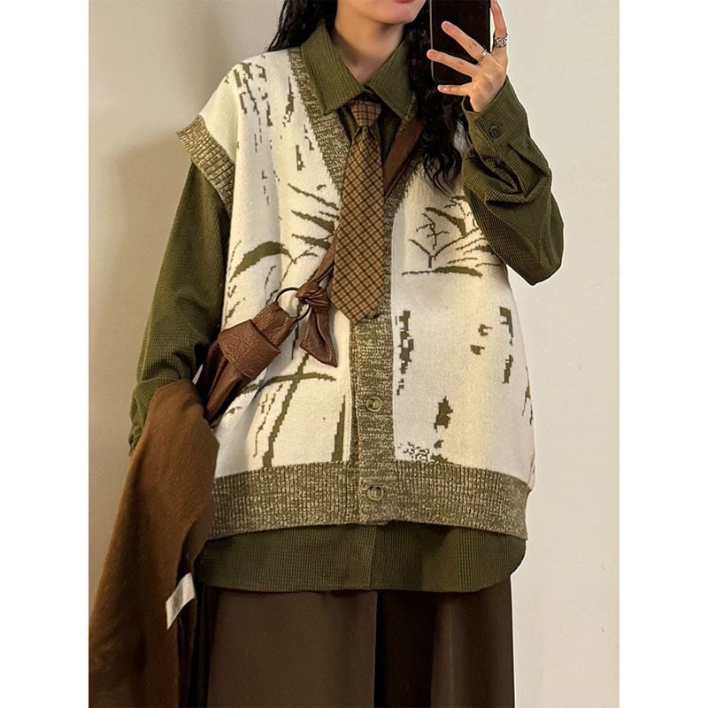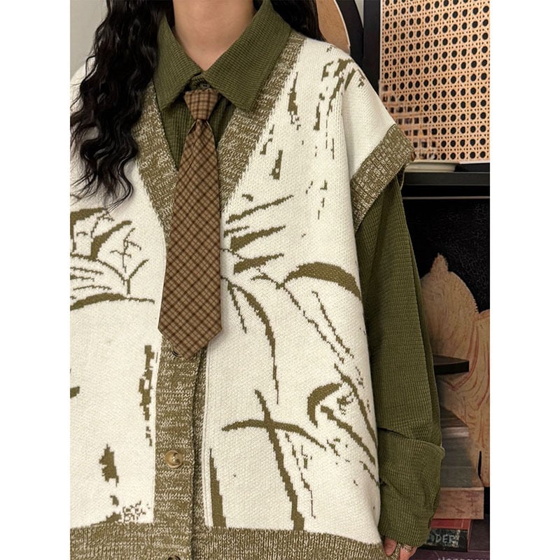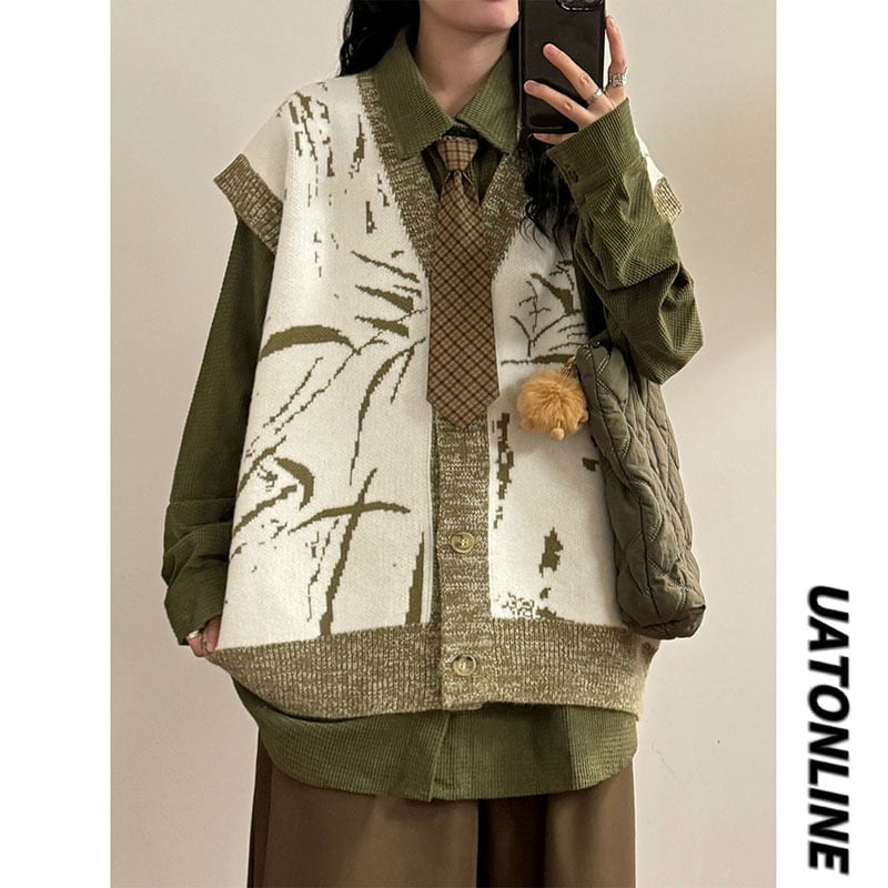 【UATONLINEシリーズ】★チャイナ風トップス★ ニットベスト ベスト ノースリーブ 男女兼用 メンズ Vネック 竹柄