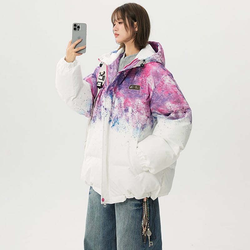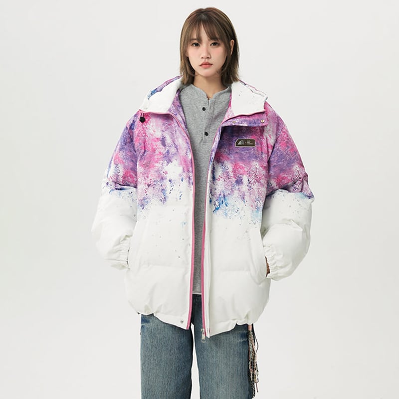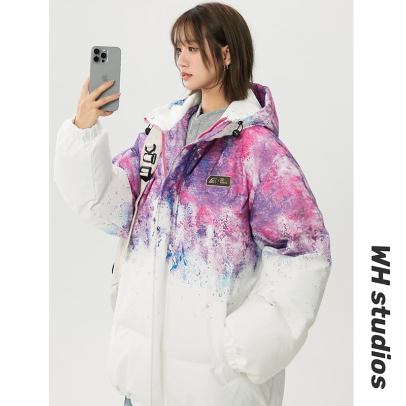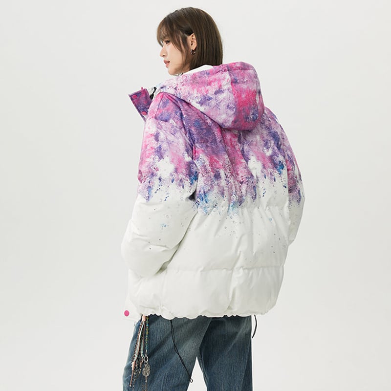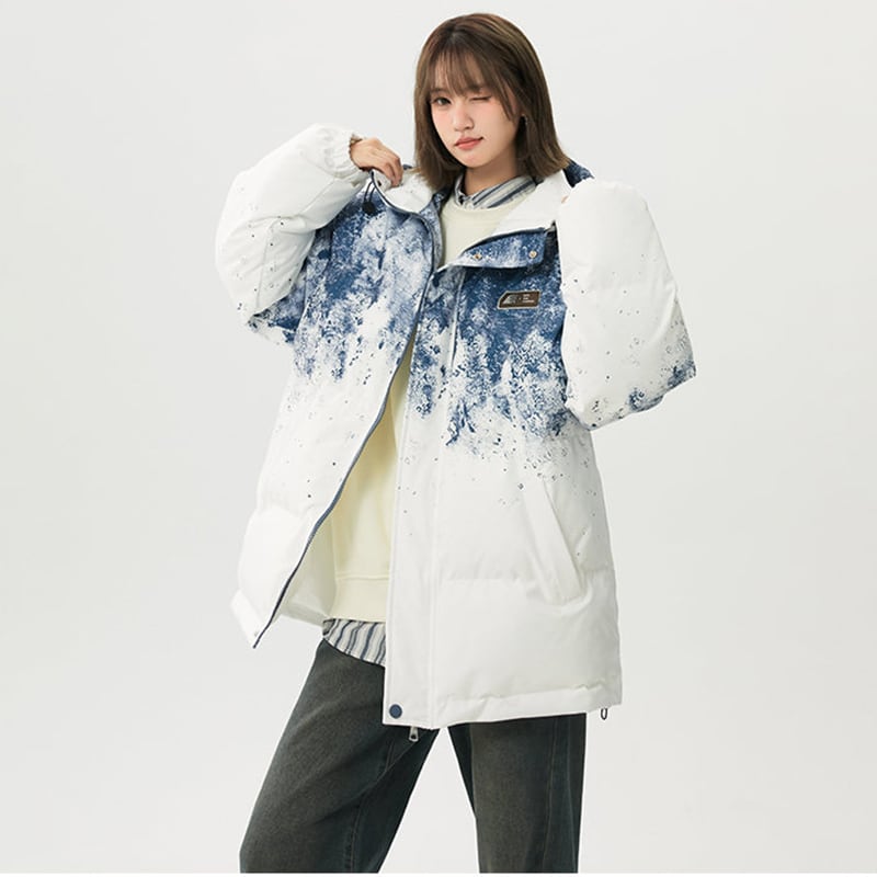 【藤伊曼シリーズ】★綿入れコート★ 3color コート アウター 男女兼用 メンズ レディース 大きいサイズ 絞り染め 落書き