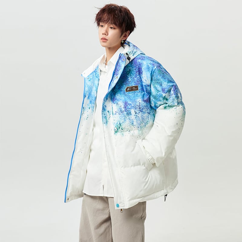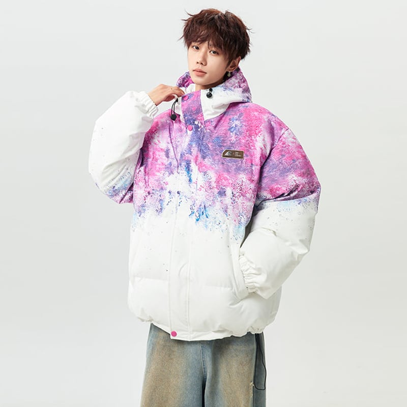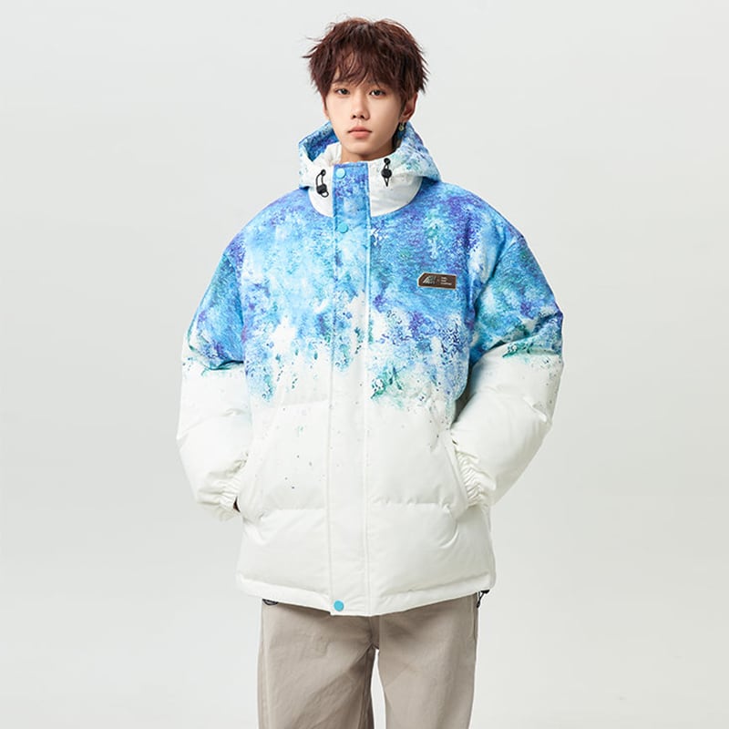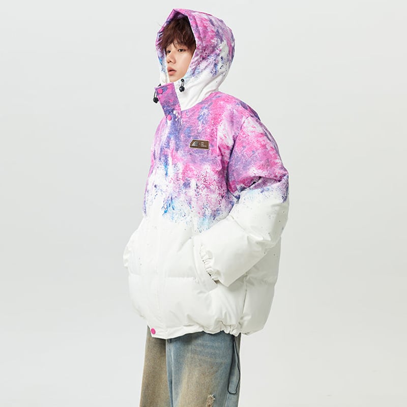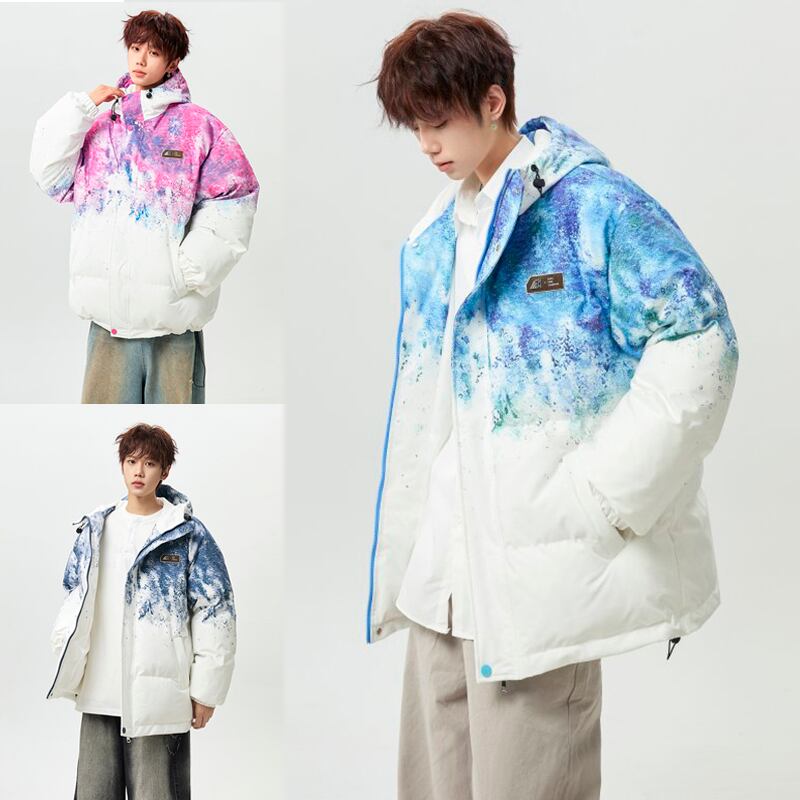【藤伊曼シリーズ】★綿入れコート★ 3color コート アウター 男女兼用 メンズ レディース 大きいサイズ 絞り染め 落書き