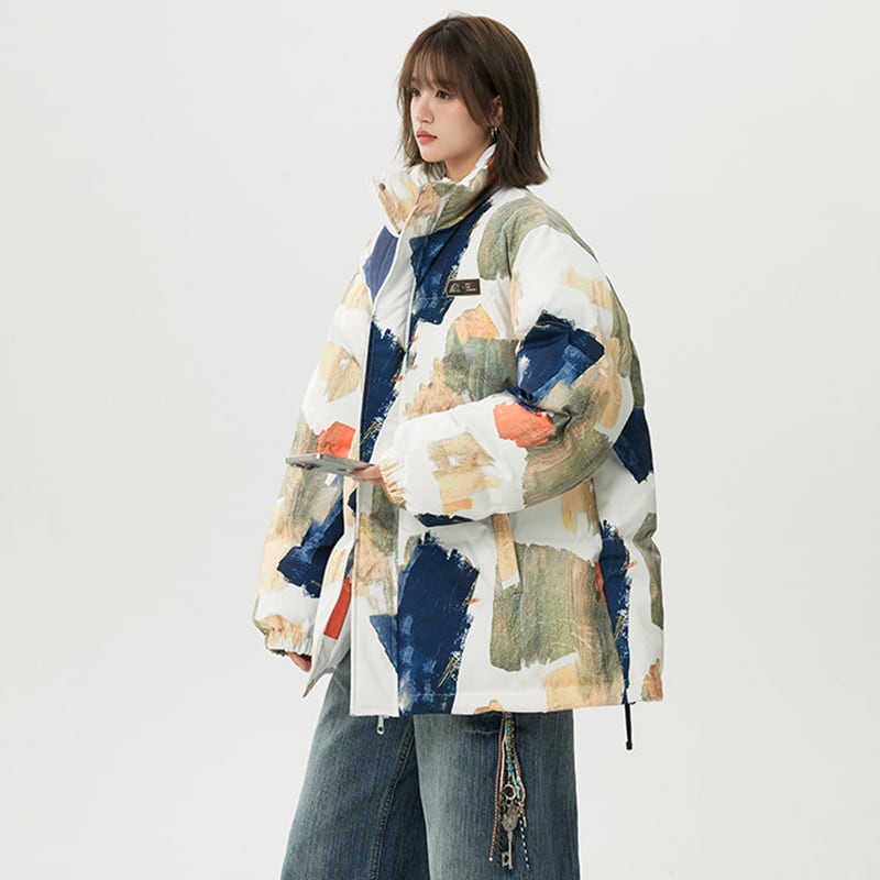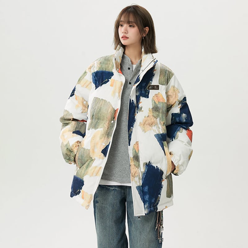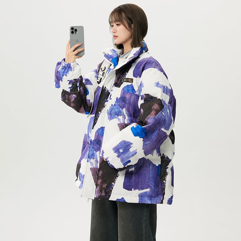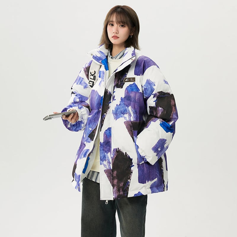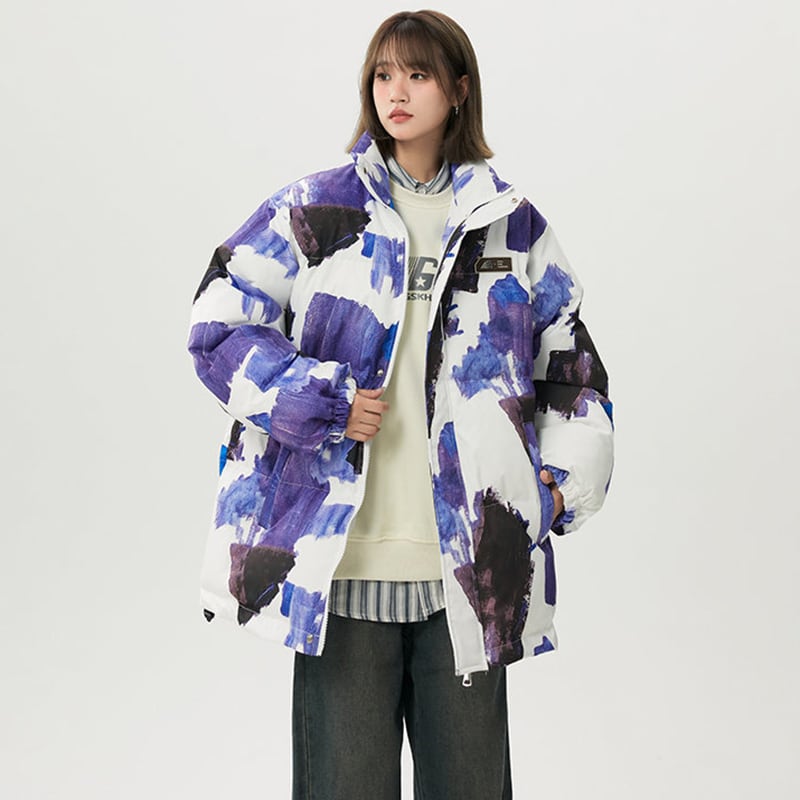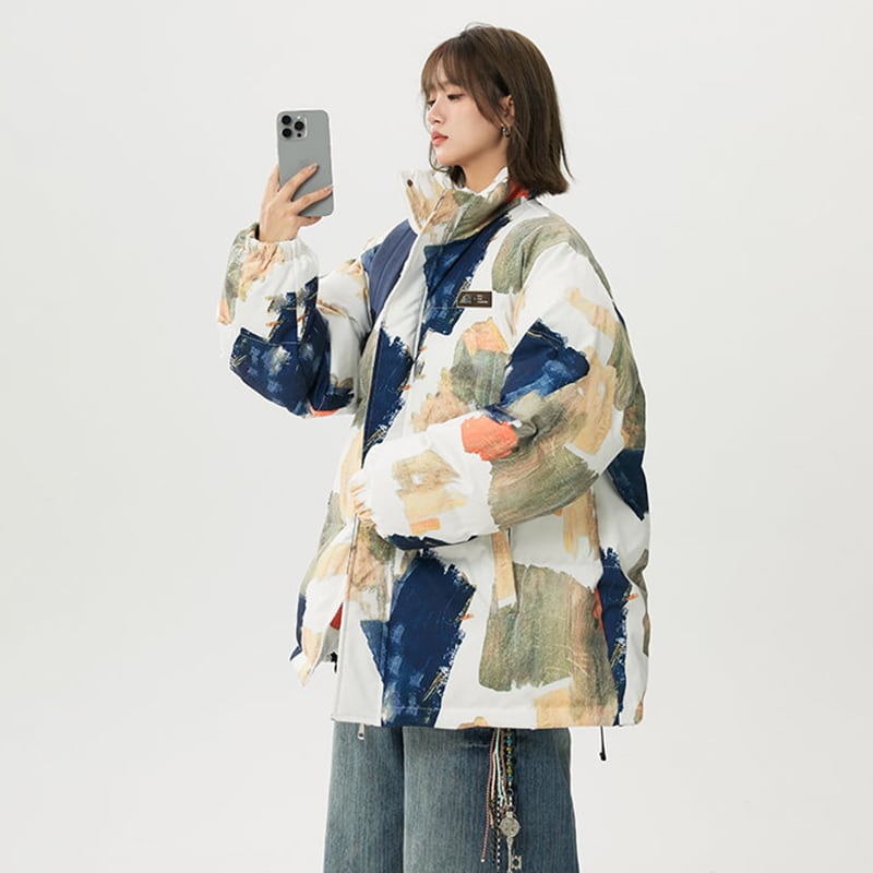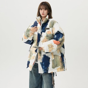 【藤伊曼シリーズ】★綿入れコート★ 2color コート アウター 男女兼用 メンズ レディース 大きいサイズ 落書き