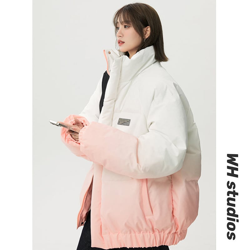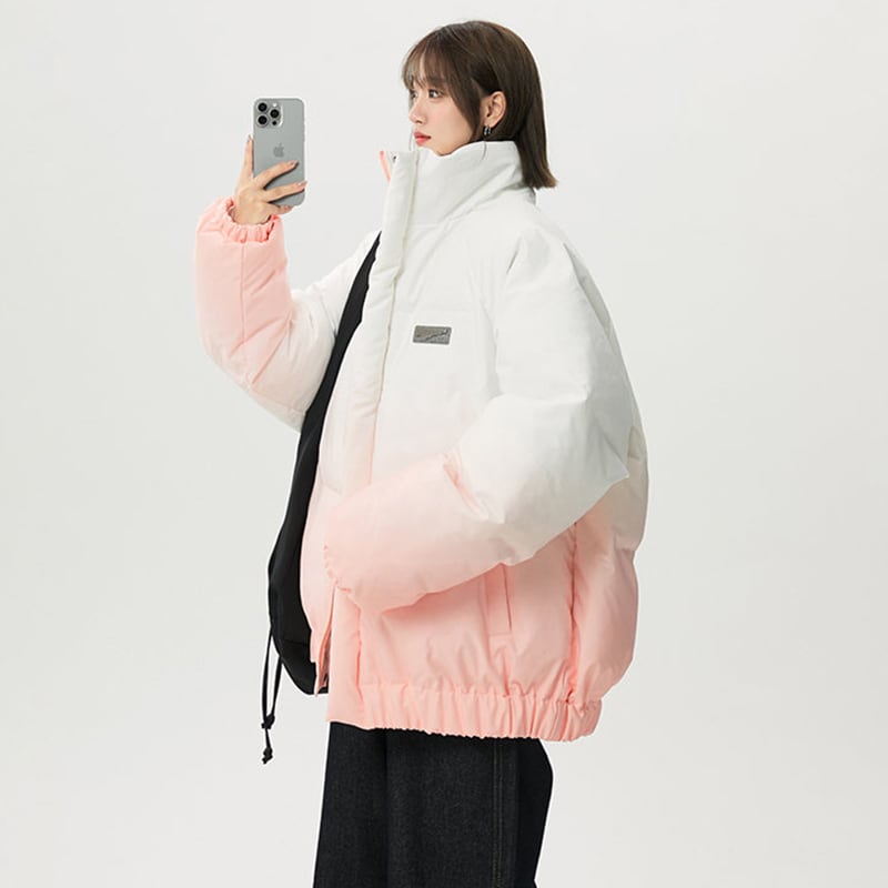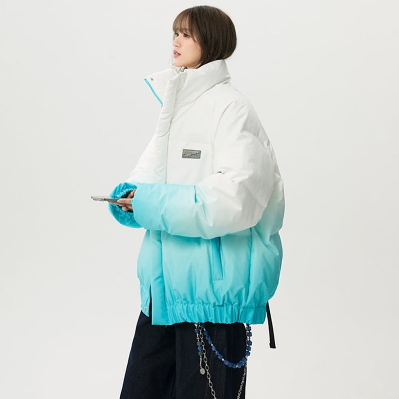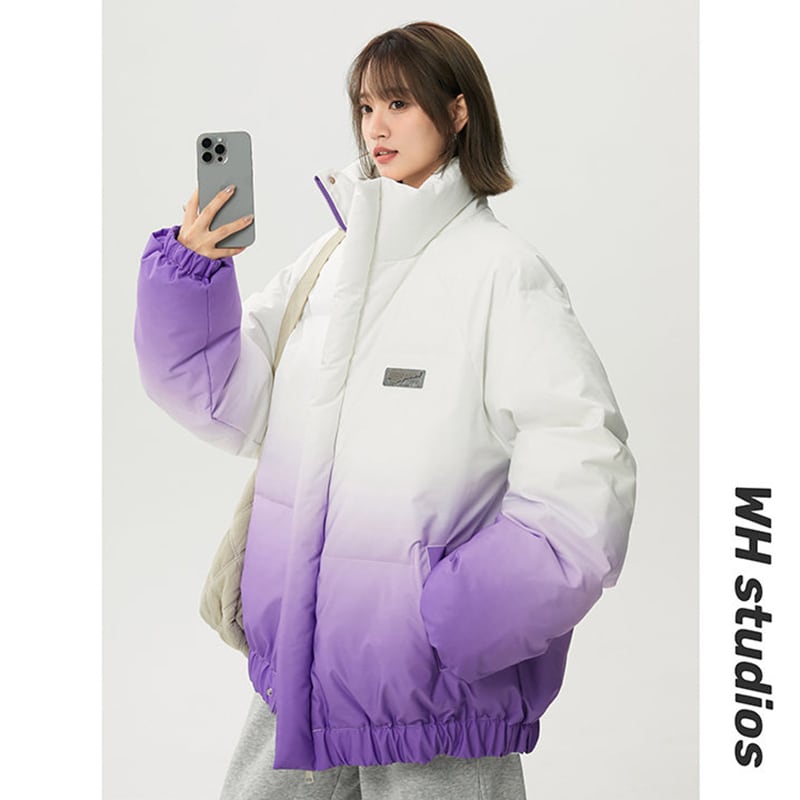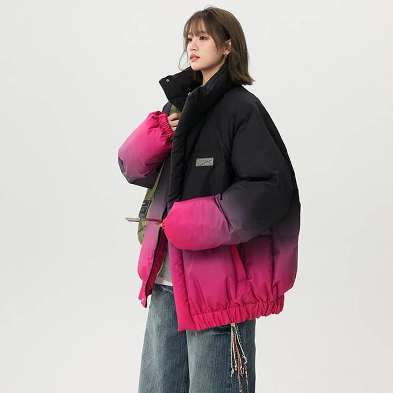 【藤伊曼シリーズ】★綿入れコート★ 4color コート アウター 男女兼用 メンズ レディース 大きいサイズ グラデーション スタンドネック