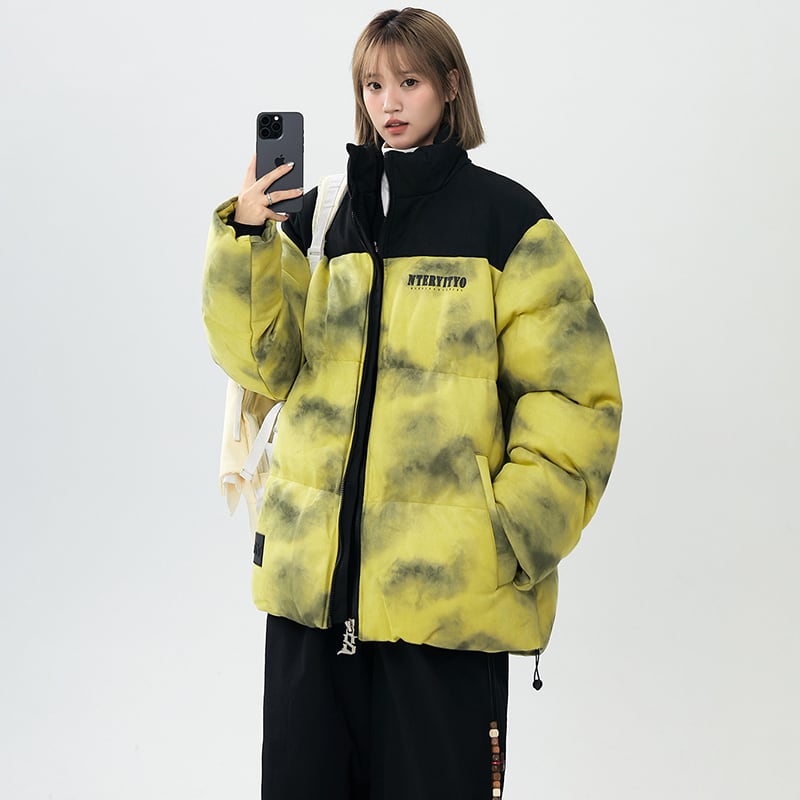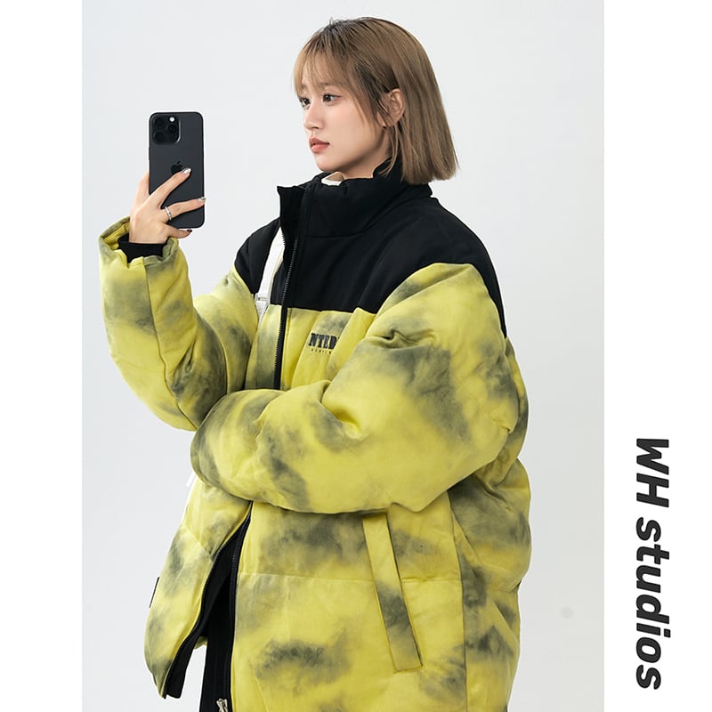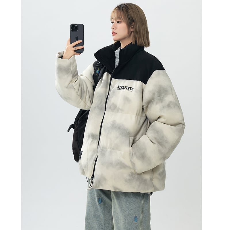 【藤伊曼シリーズ】★綿入れコート★ 2color コート アウター 男女兼用 メンズ レディース 大きいサイズ 配色 スタンドネック