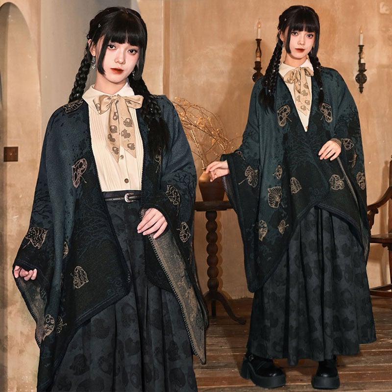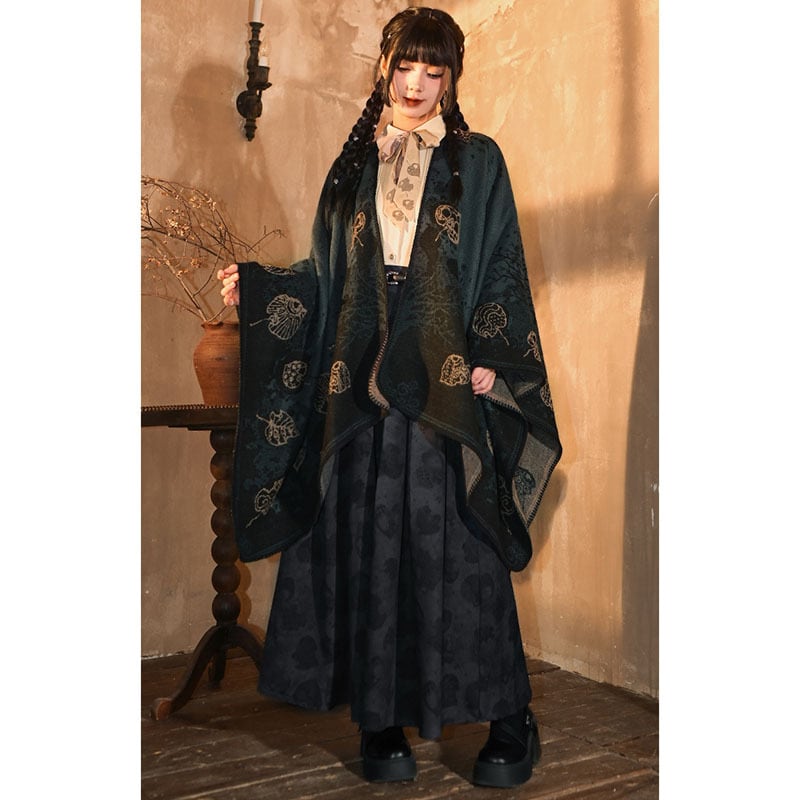 【古怪舍---輪回シリーズ】★チャイナ風アウター★ マント ショール 厚て レトロ ニット ゆったり