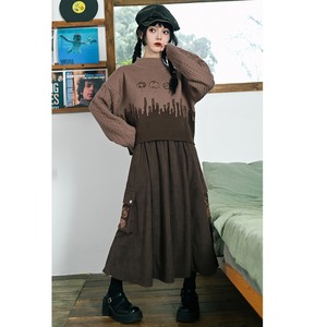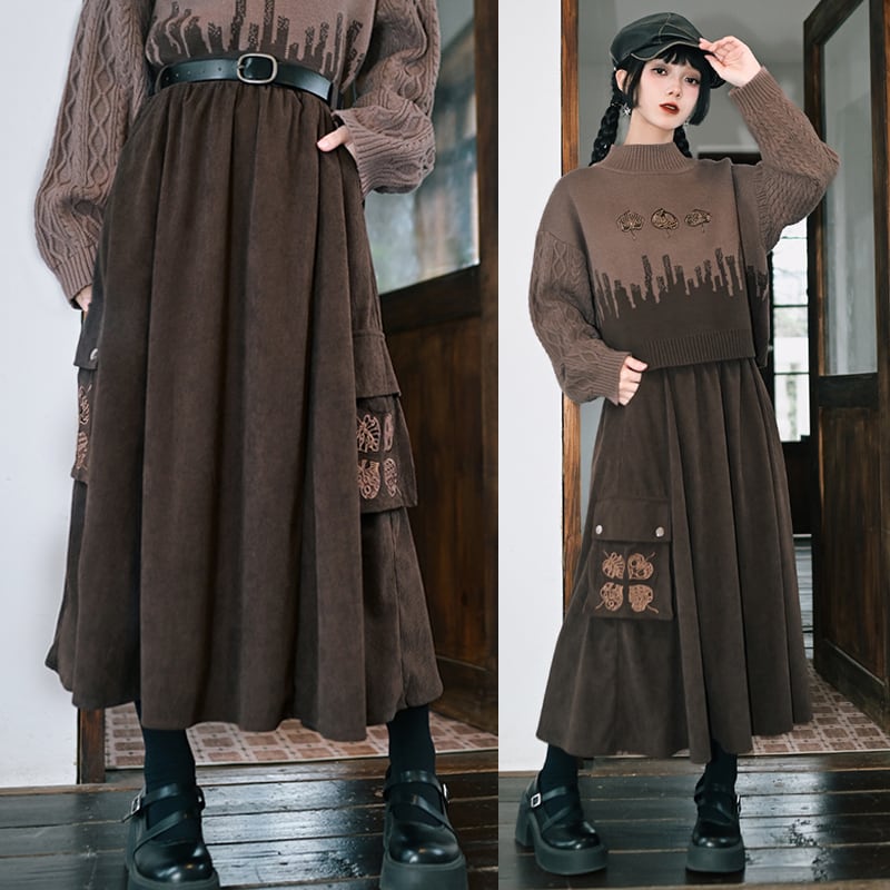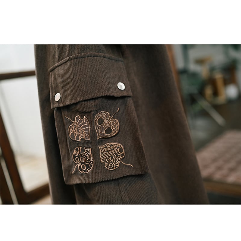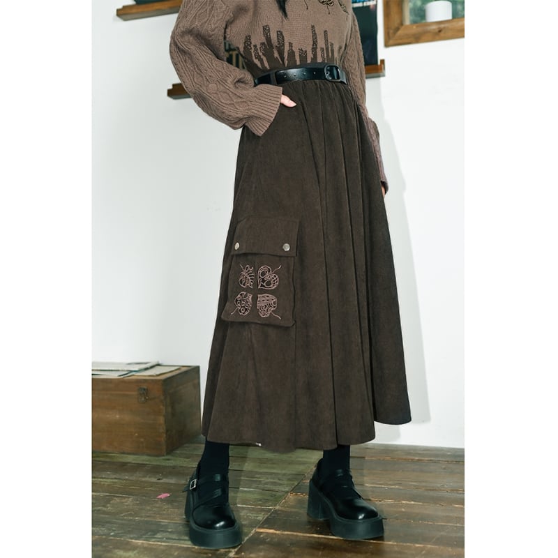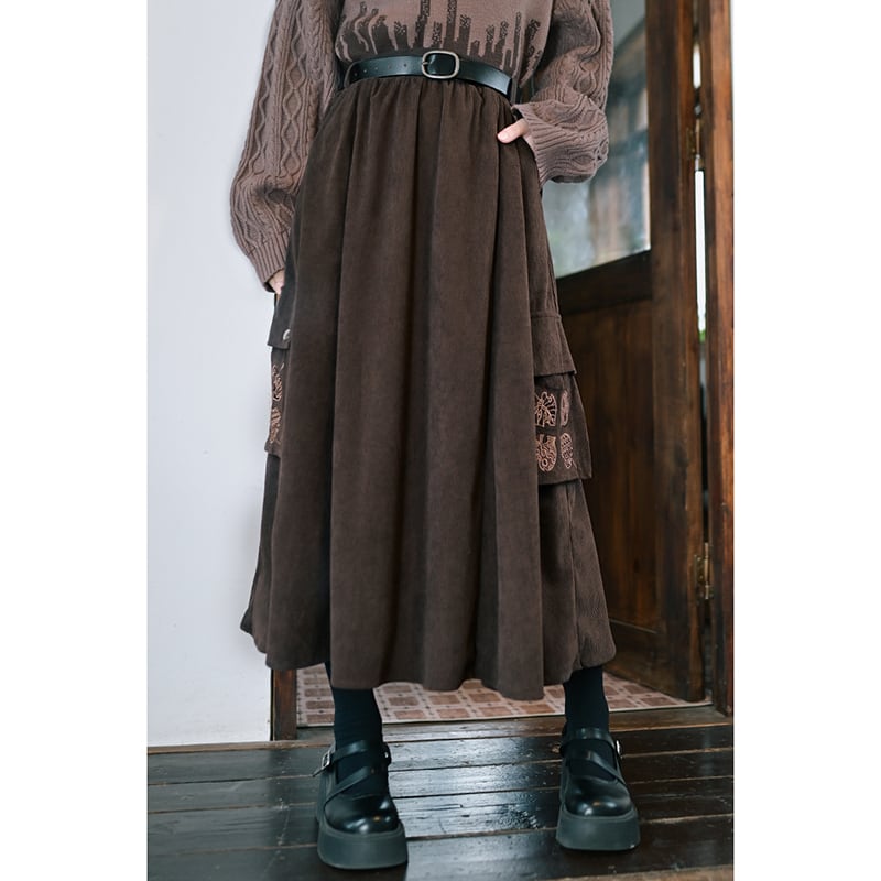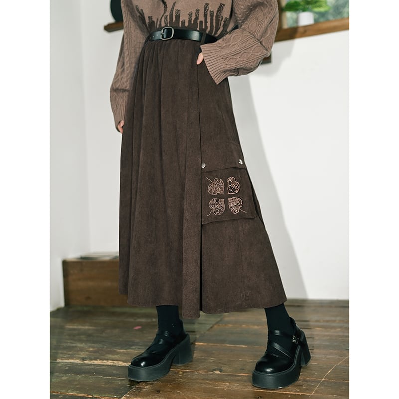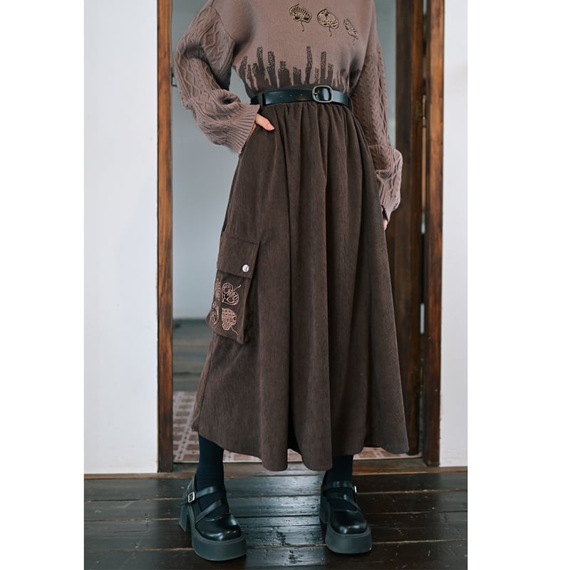 【古怪舍---輪回シリーズ】★チャイナ風スカート★ ボトムス 厚て 秋冬 コーヒー色 コーデュロイ ポケット付き